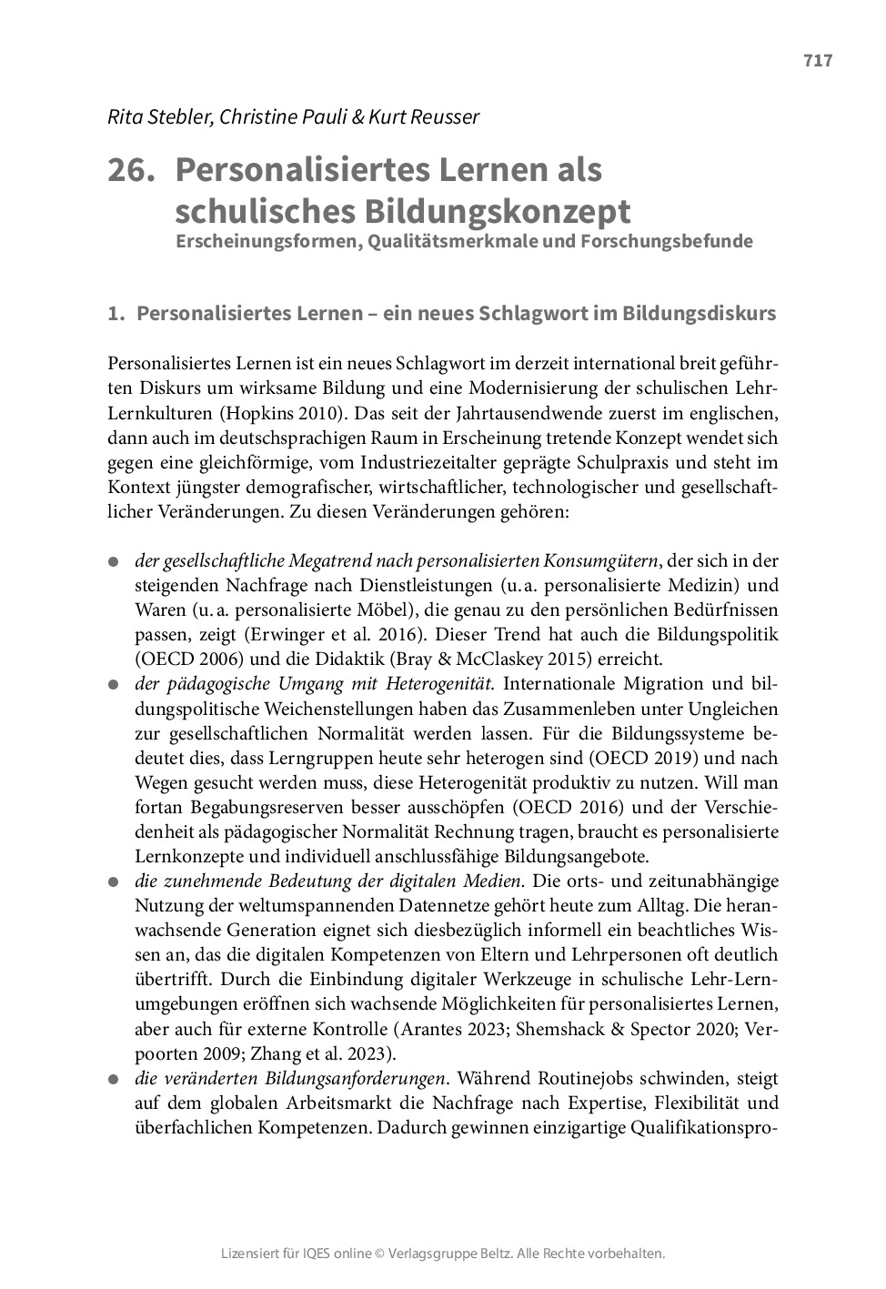 Personalisiertes Lernen als schulisches Bildungskonzept