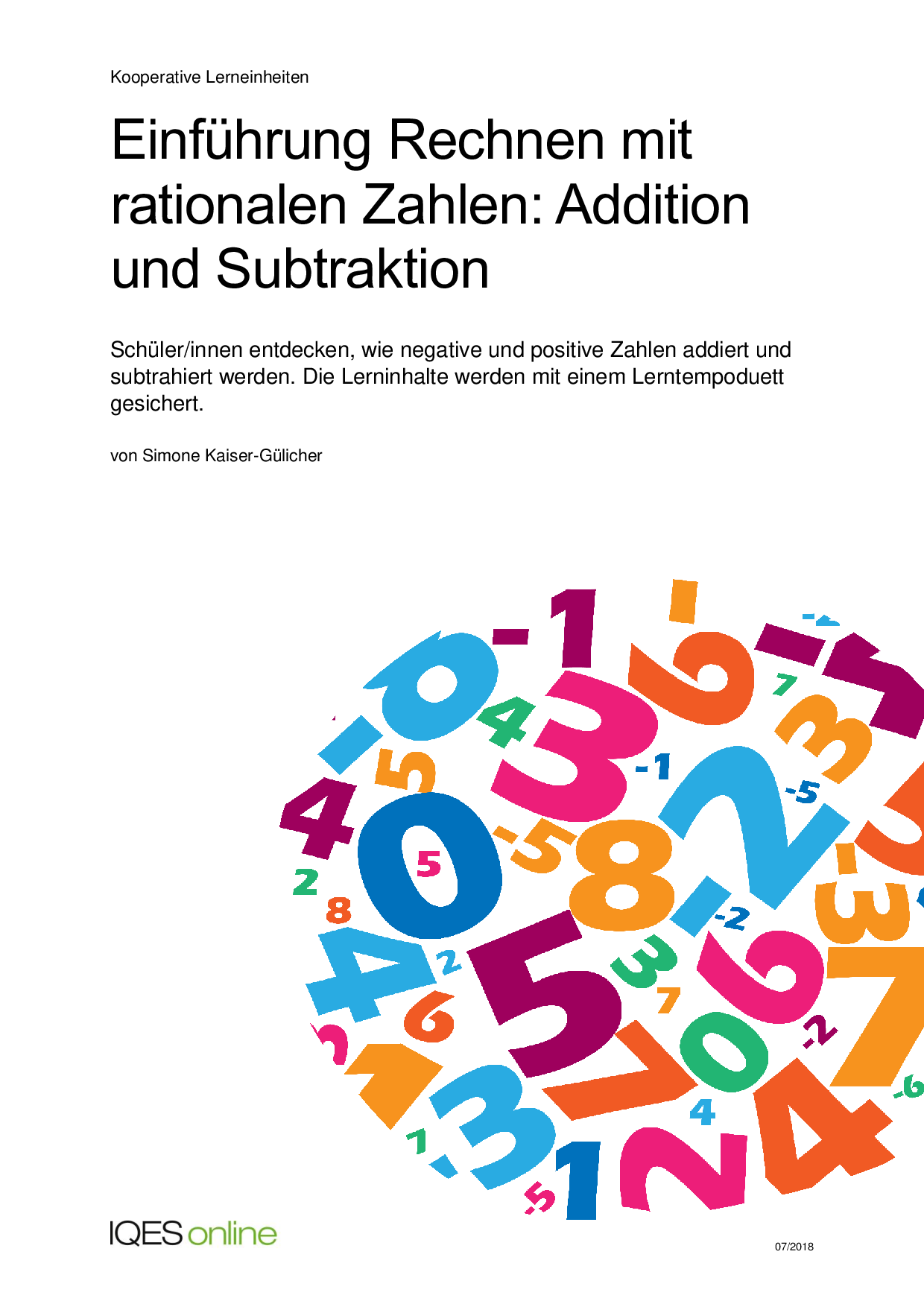 In dieser Doppelstunde werden die Schülerinnen und Schüler ins Rechnen mit mit rationalen Zahlen eingeführt. Sie entdecken, wie negative und positive Zahlen addiert und subtrahiert werden können. Die Lerninhalte werden mit einem Lerntempoduett gesichert.