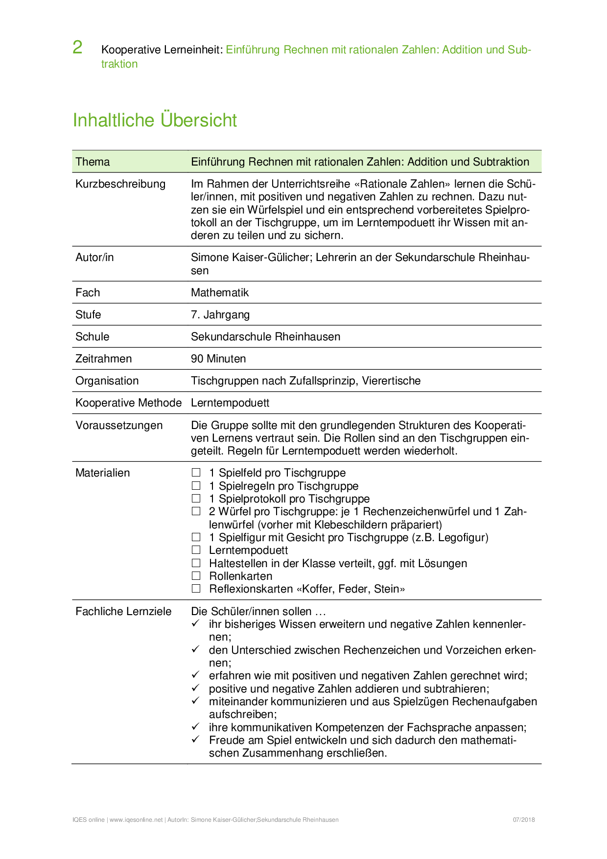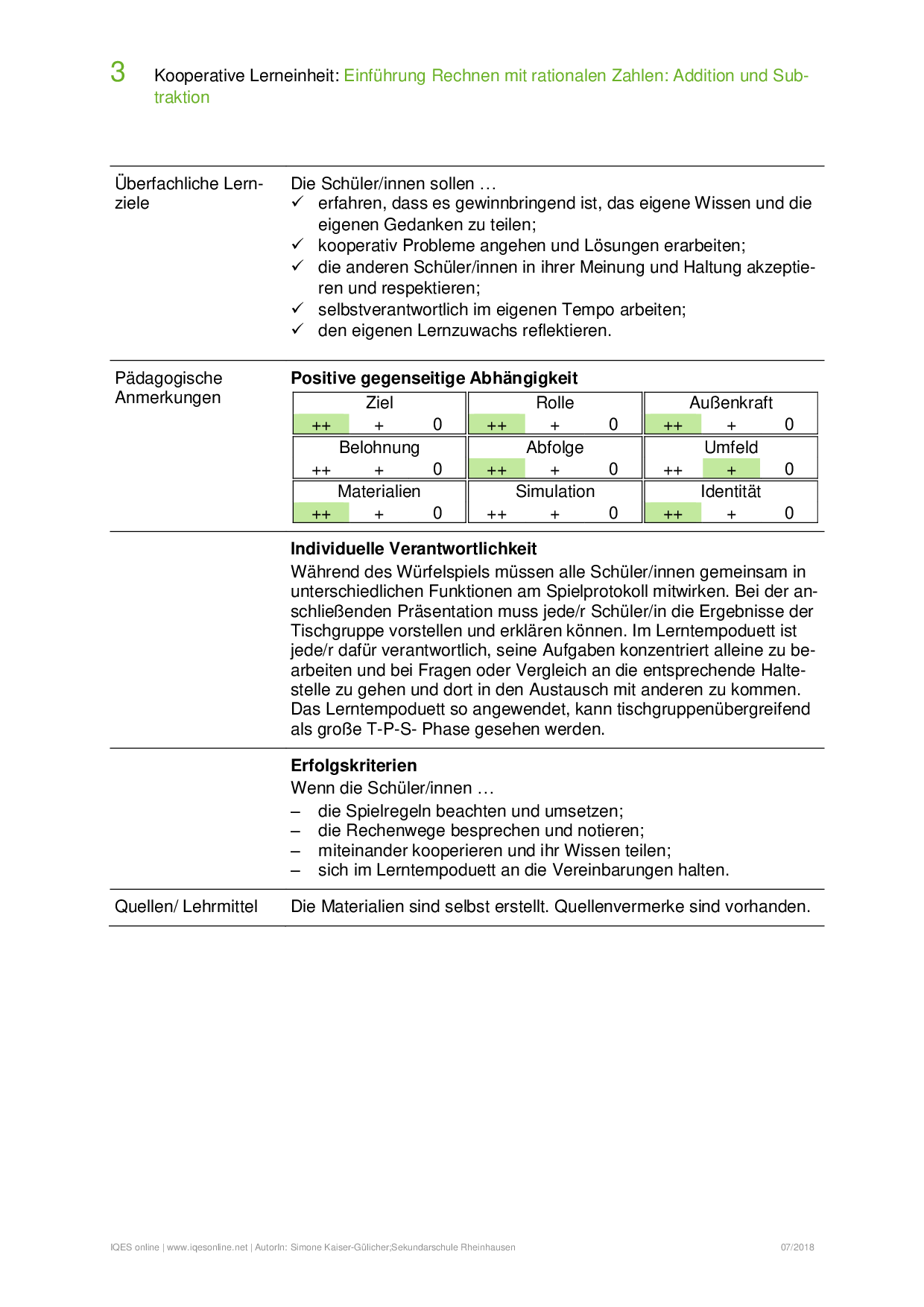 Kooperative Aufgaben: Einführung Rechnen mit rationalen Zahlen