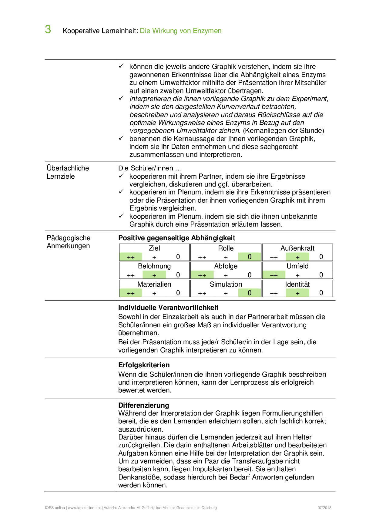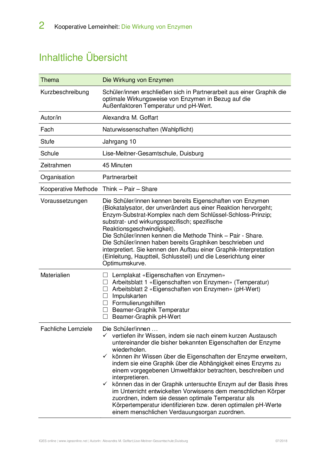 In der hier beschriebenen Unterrichtsstunde erarbeiten die Schülerinnen und Schüler die optimale Wirkungsweise von Enzymen. Dazu werden beigefügte Grafiken ausgewertet und interpretiert.
