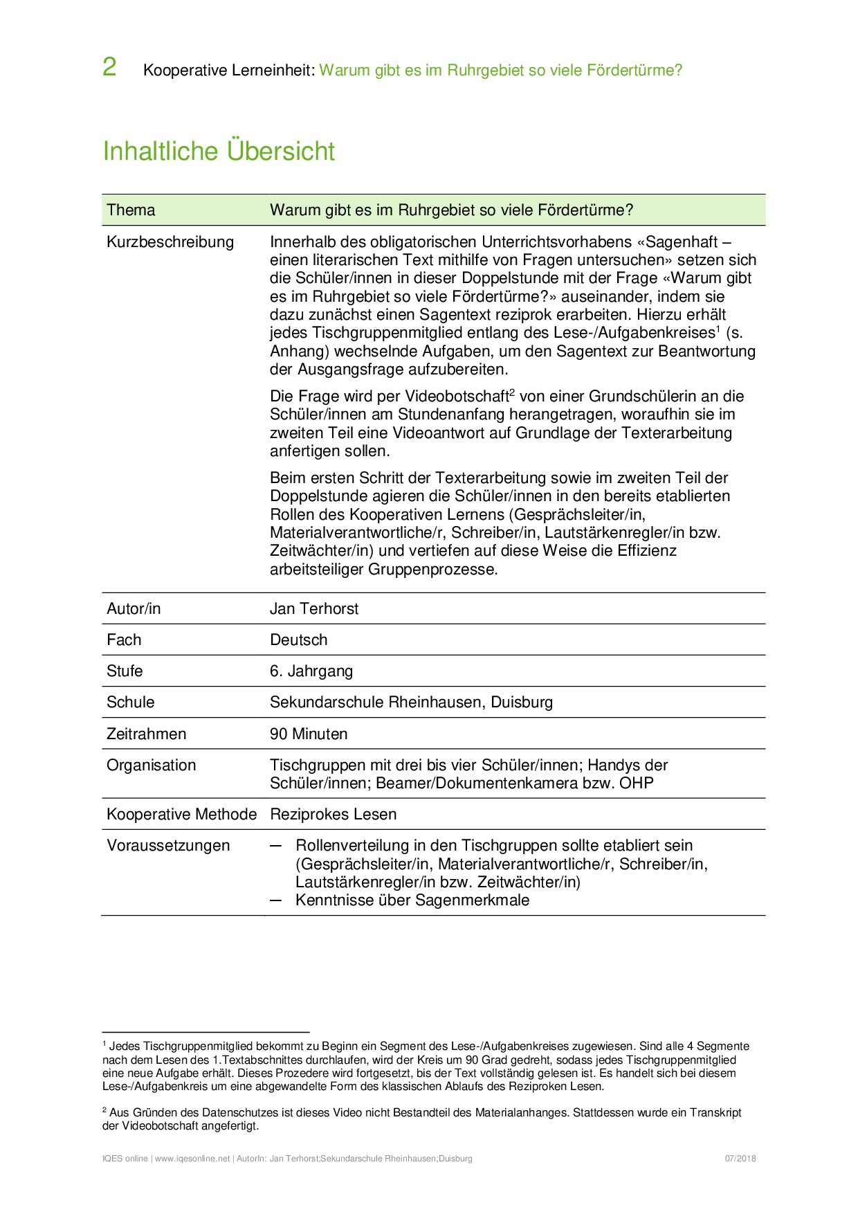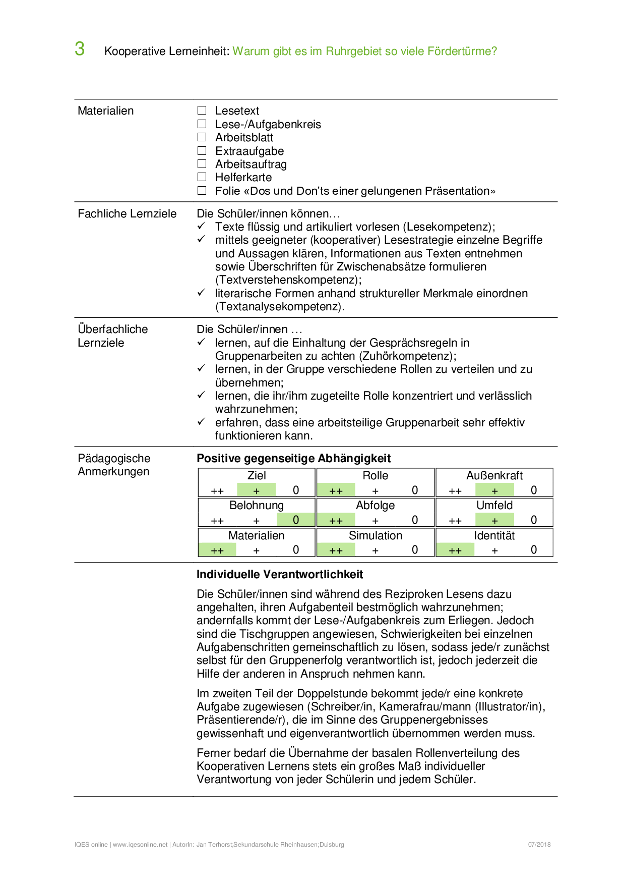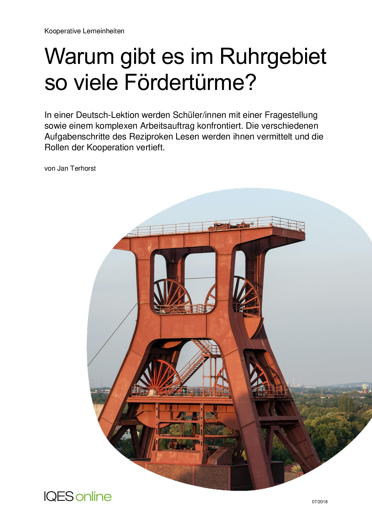 In dieser Deutsch-Lektion werden die Schülerinnen und Schüler mit einer Fragestellung zum Thema Fördertrüme im Ruhrgebiet sowie einem komplexen Arbeitsauftrag konfrontiert. Dabei wird ihnen das Reziproke Lesen vermittelt.