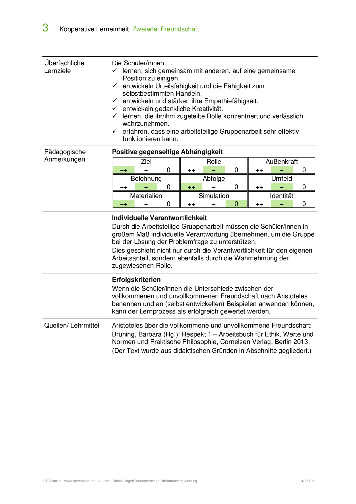 In dieser Unterrichtsstunde setzen sich die Lernenden mit der Frage auseinander, welche unterschiedlichen Arten von Freundschaft es gibt. Dabei üben sie die verschiedenen Rollen des Kooperativen Lernens und erfahren damit, wie effektiv eine arbeitsteilige Gruppenarbeit funktionieren kann.