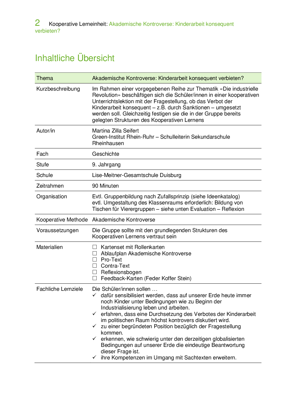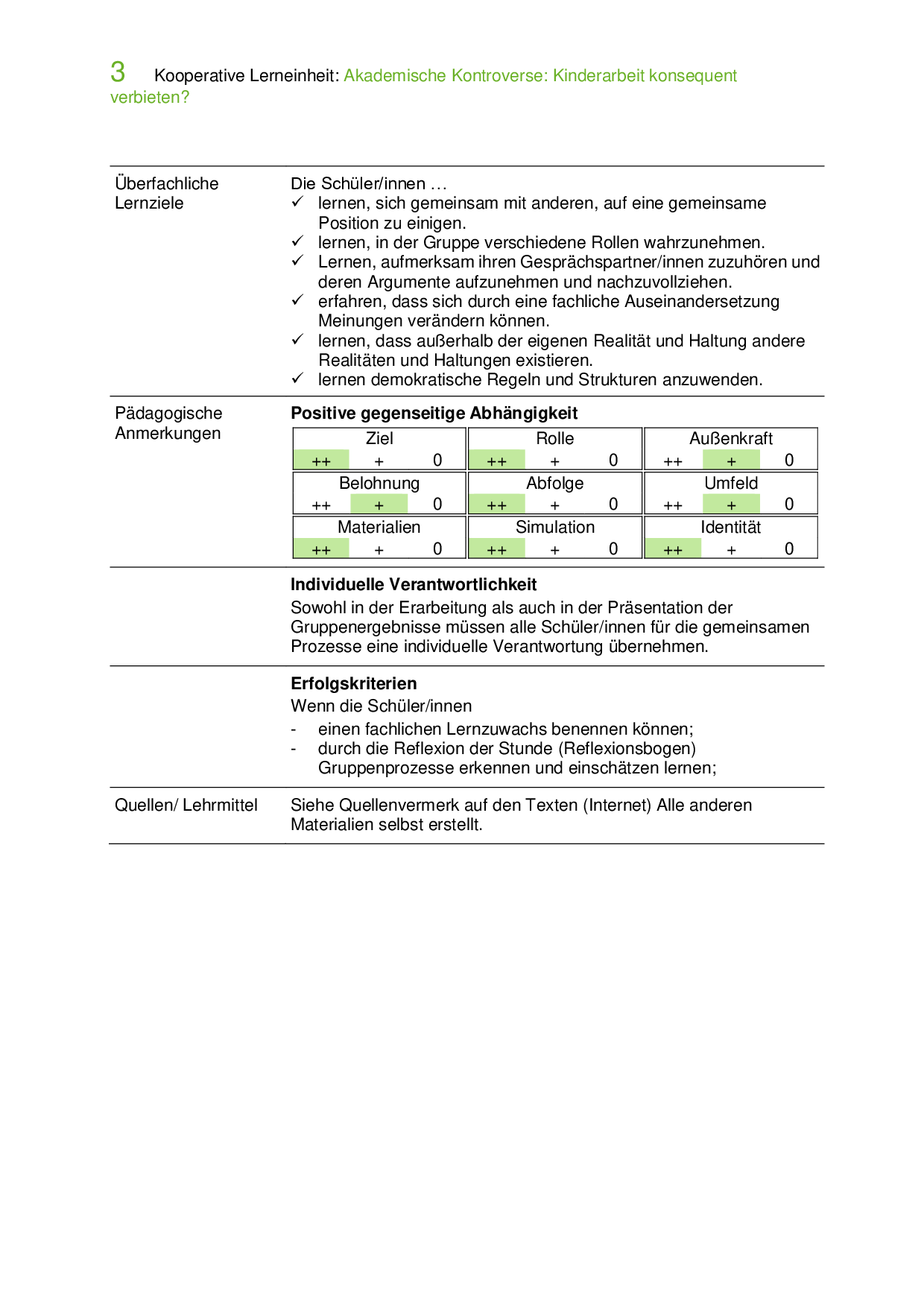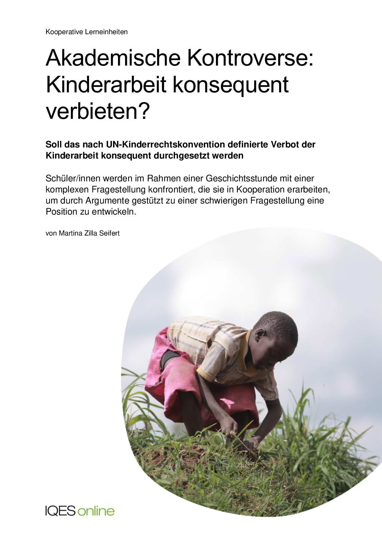 Soll das nach UN-Kinderrechtskonvention definierte Verbot der Kinderarbeit konsequent durchgesetzt werden Schüler/innen werden im Rahmen einer Geschichtsstunde mit einer komplexen Fragestellung konfrontiert, die sie in Kooperation erarbeiten, um durch Argumente gestützt zu einer schwierigen Fragestellung eine Position zu entwickeln.