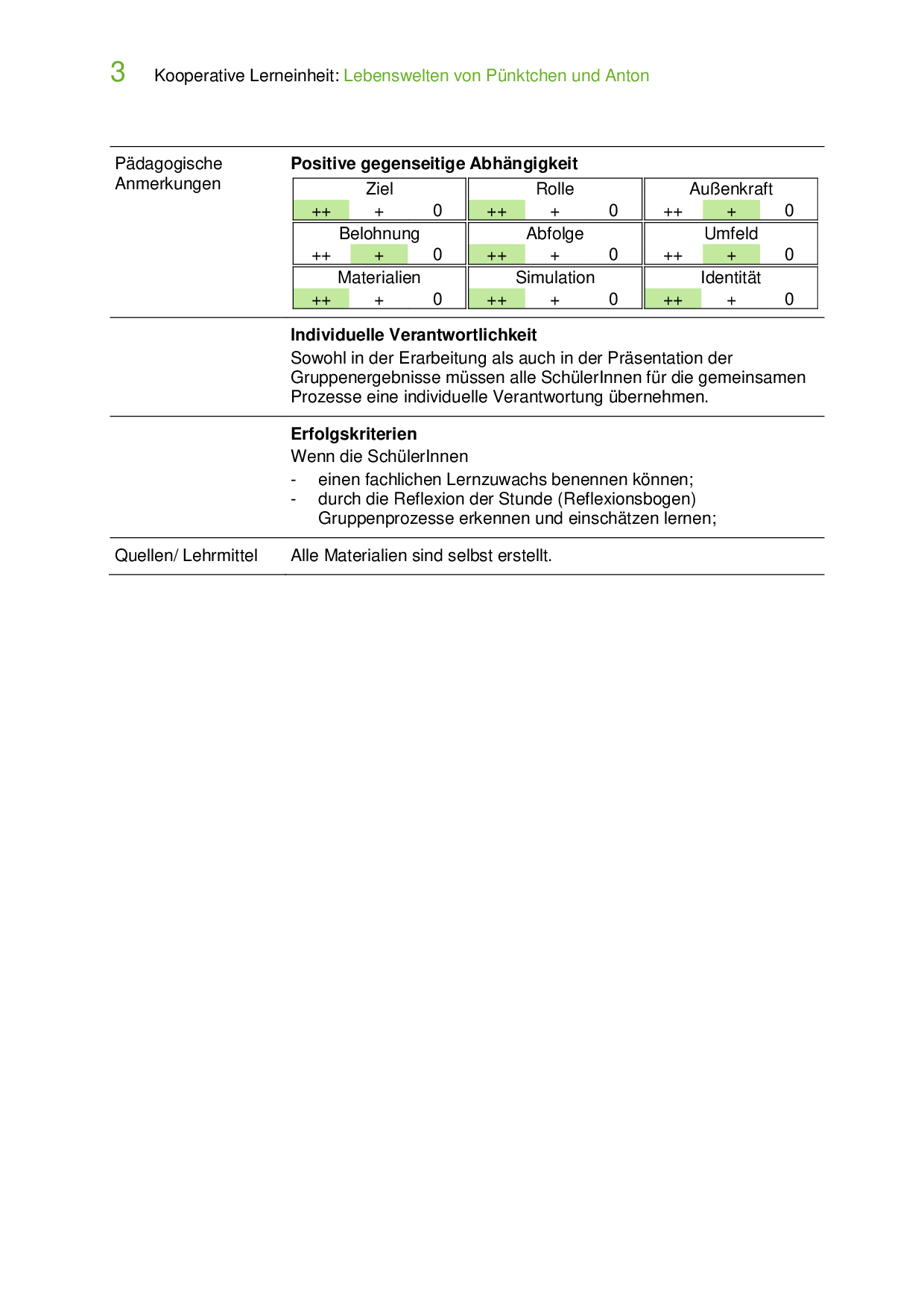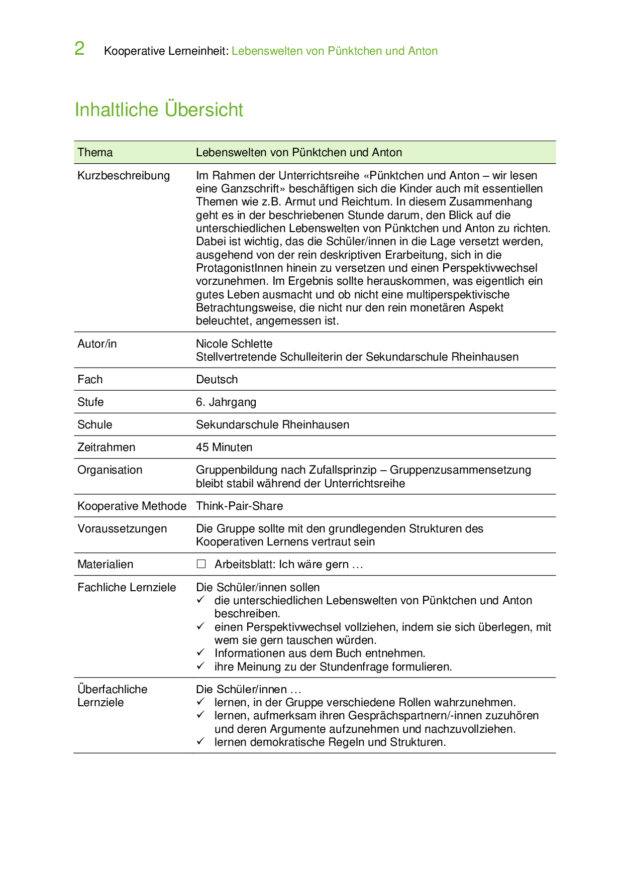 Kooperative Aufgaben: Lebenswelten Pünktchen und Anton