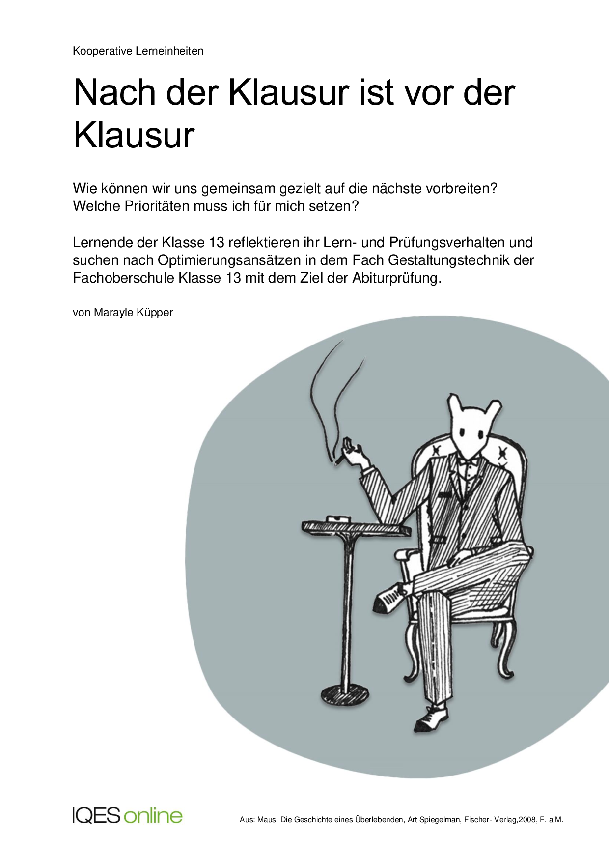 Im Rahmen einer vorgegebenen Unterrichtsreihe reflektieren Lernende der 13. Klassenstufe ihr Lern- und Prüfungsverhalten zu einer vierstündigen Klausur und suchen nach Optimierungsansätzen.