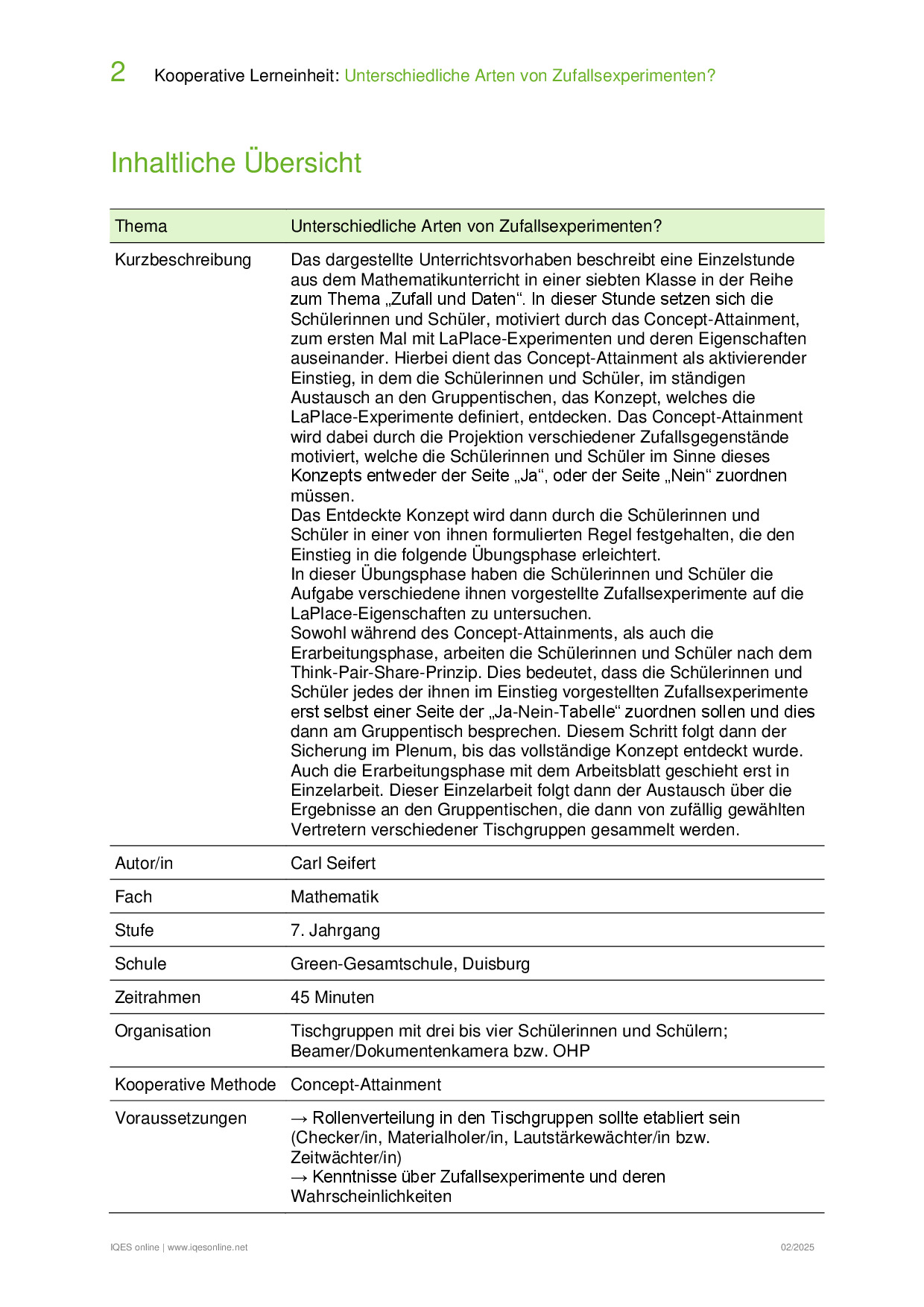 In dieser Stunde setzen sich die Schüler:innen, motiviert durch das Concept-Attainment, zum ersten Mal mit LaPlace-Experimenten und deren Eigenschaften auseinander. Hierbei dient das Concept-Attainment als aktivierender Einstieg, in dem die Schülerinnen im ständigen Austausch an den Gruppentischen, das Konzept, welches die LaPlace-Experimente definiert, entdecken.