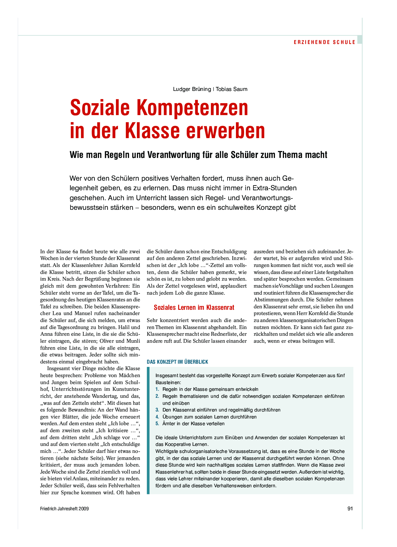 In sechs Schritten von der Vereinbarung sozialer Kompetenzen zu ihrer Einübung und Reflexion.