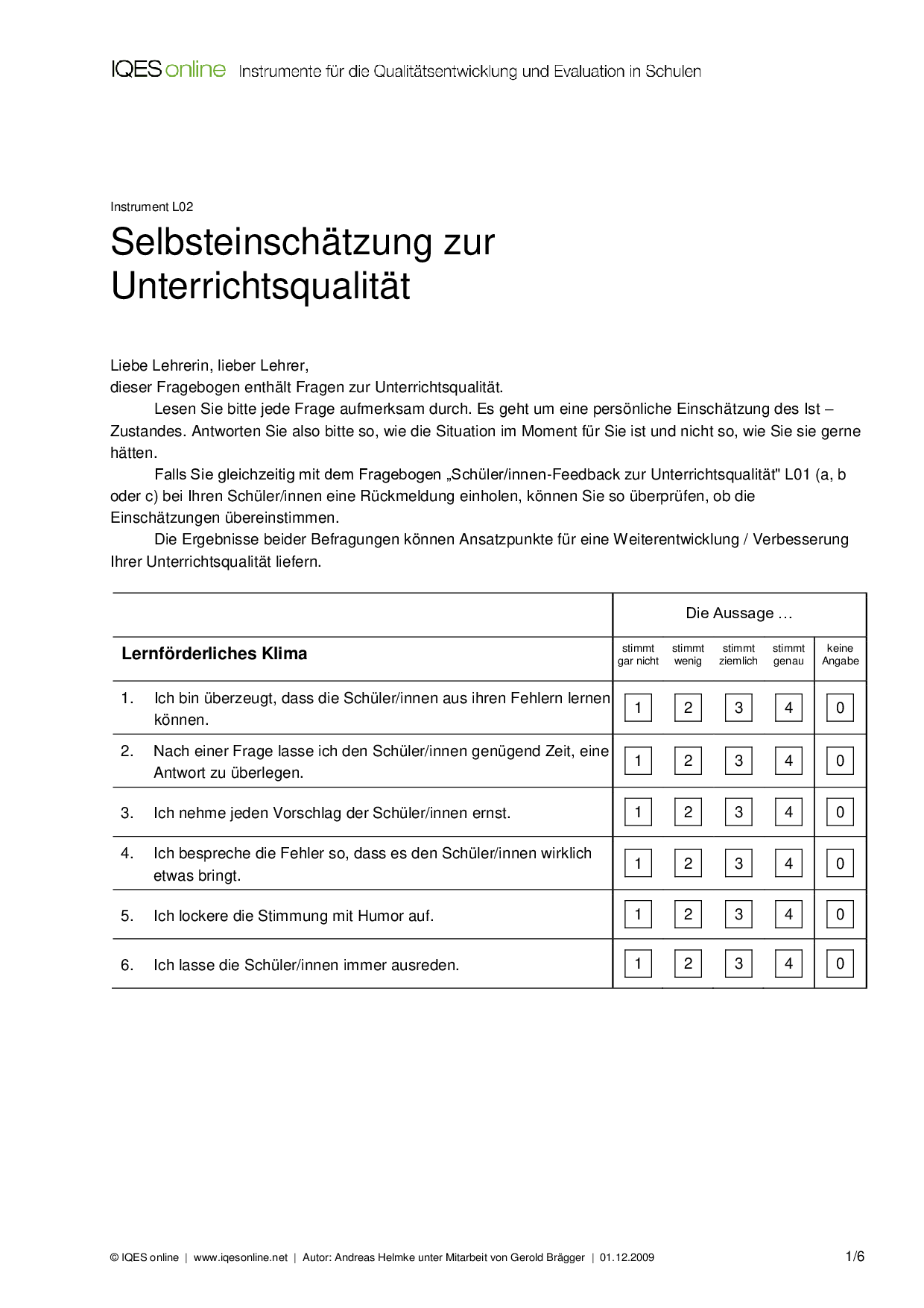 Der Fragebogen regt dazu an, darüber nachzudenken, wie eine Lehrperson zu ihren Schülerinnen und Schülern steht und wie sie die Beziehung zu ihnen gestaltet.