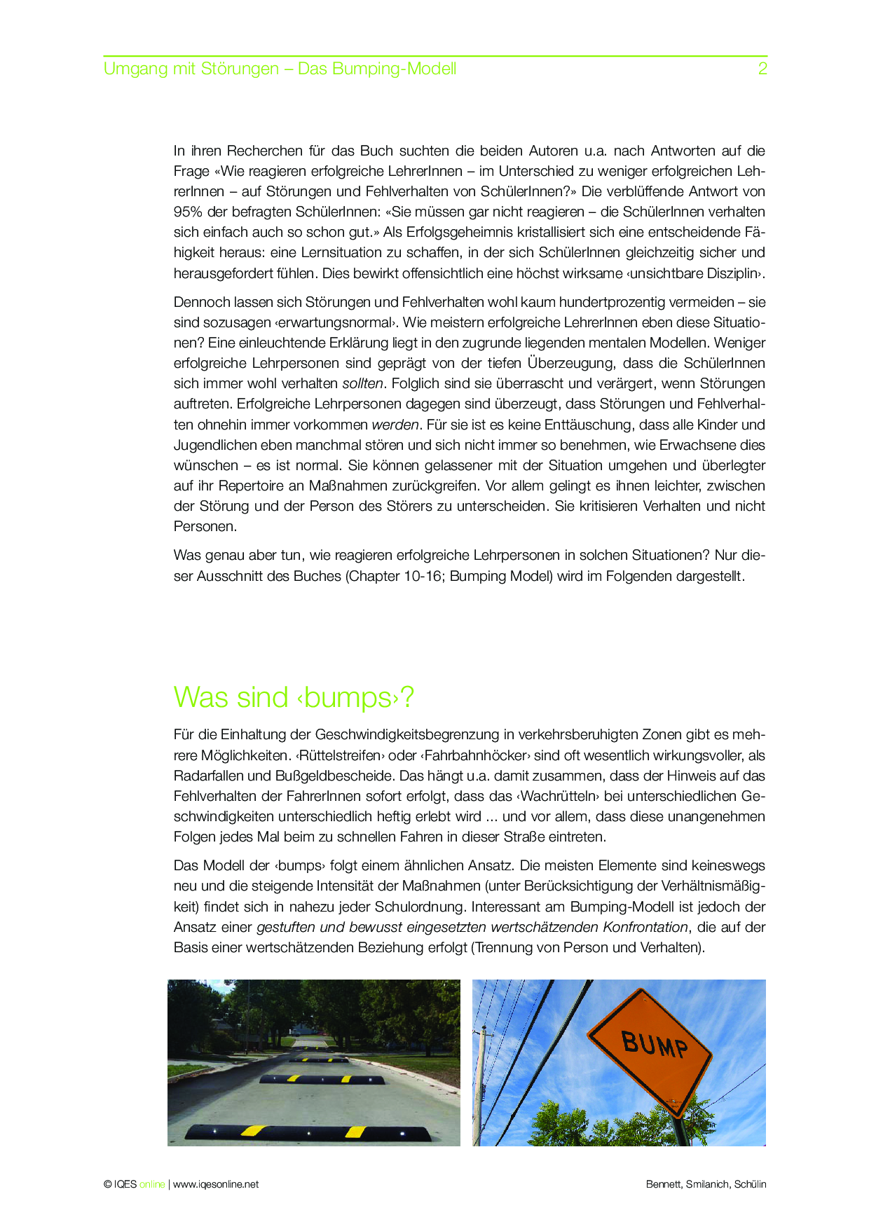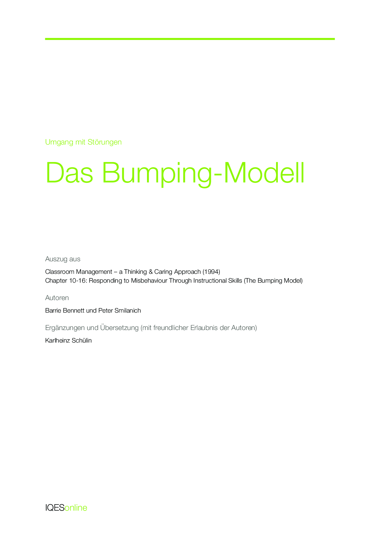 Wie mit Störungen umgegangen werden kann, wird in diesem Text anhand des Bumping Modells erklärt. Zentral ist dabei ein stufenweises Vorgehen für Störungen im Unterricht. Angefangen mit einer niederschwelligen Reaktion ohne Sanktionen bis zur schriftlichen Vereinbarung mit den Lernenden.