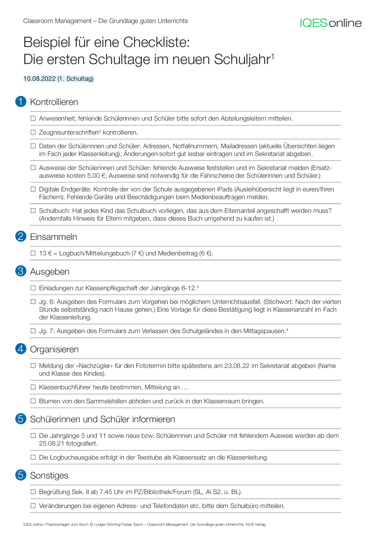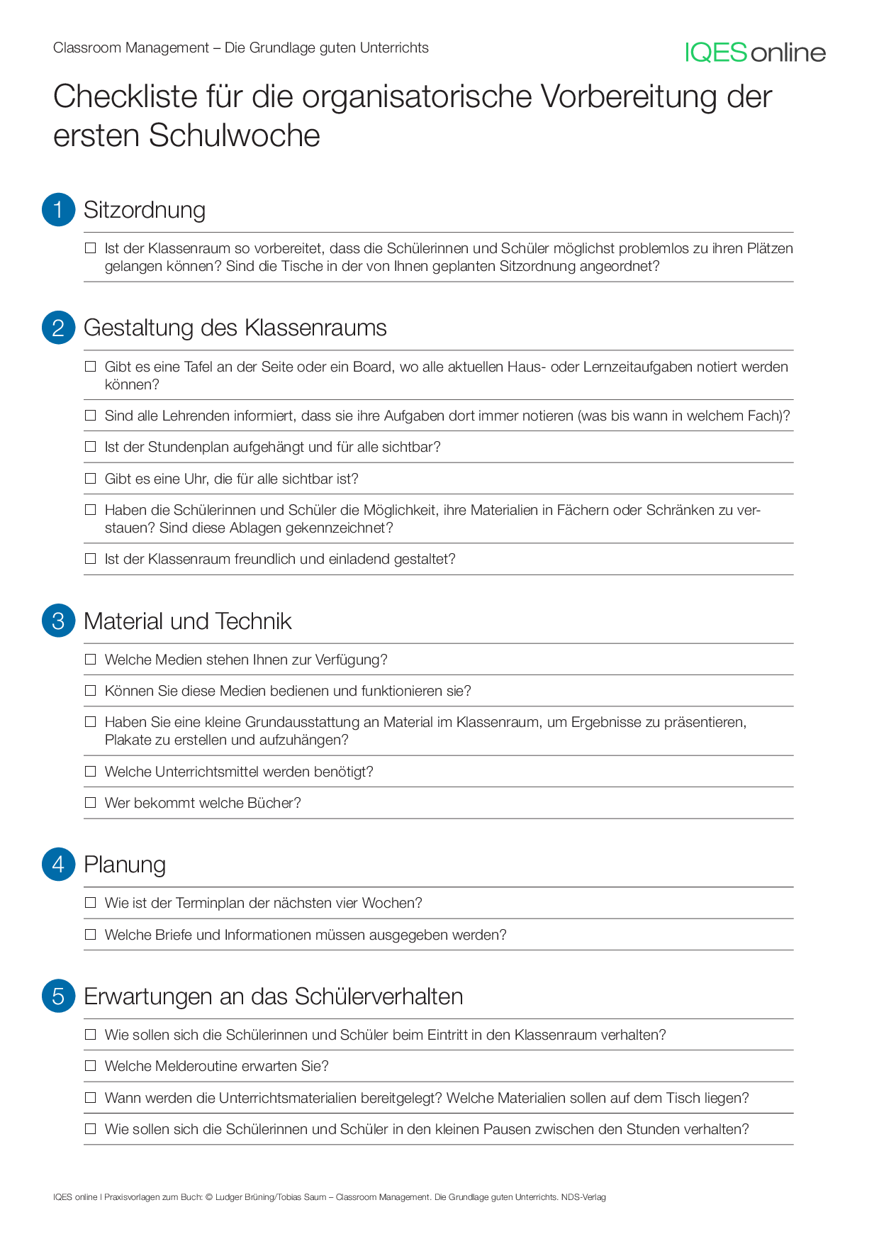 In der Checkliste werden Eigenschaften und Haltungen beschrieben, die Lehrer:innen entwickeln oder besitzen sollten, um im Unterrichtsalltag erfolgreich zu sein.