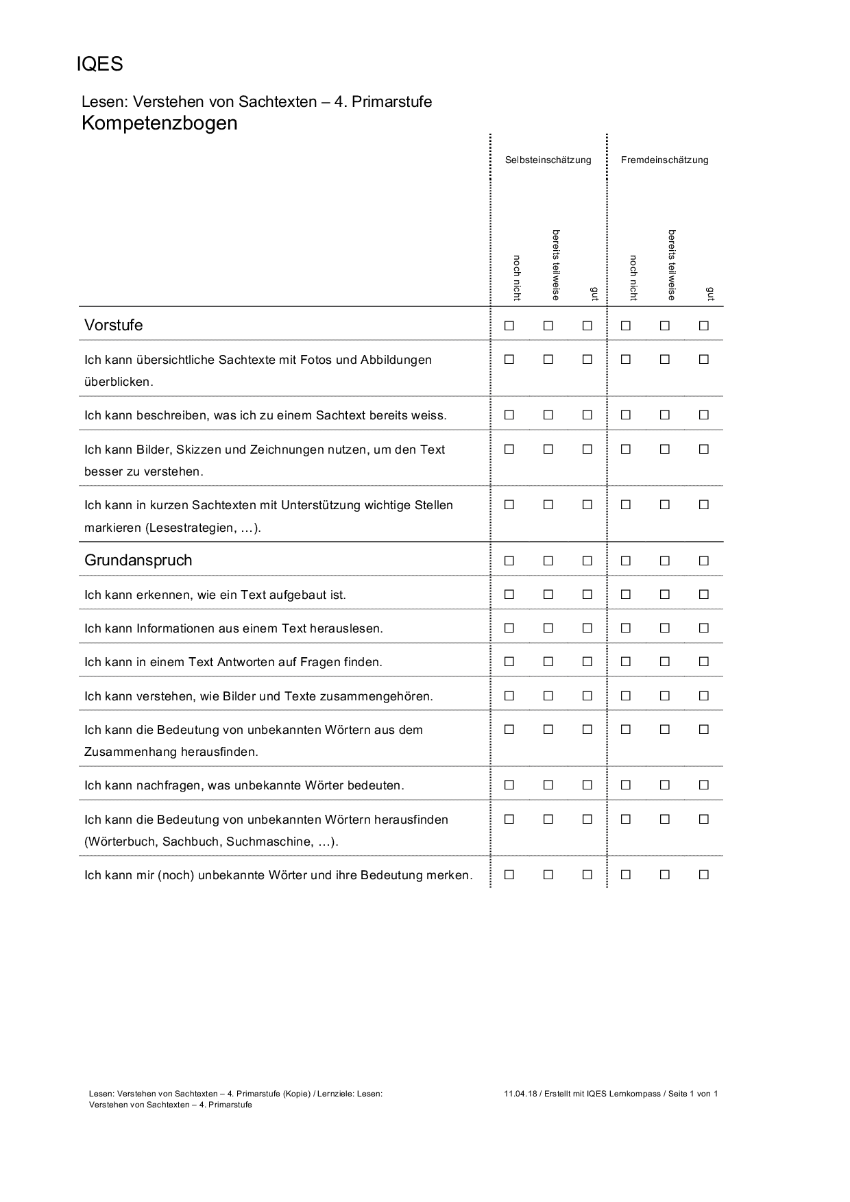 Mit Kompetenzrastern den Unterricht planen und bewerten