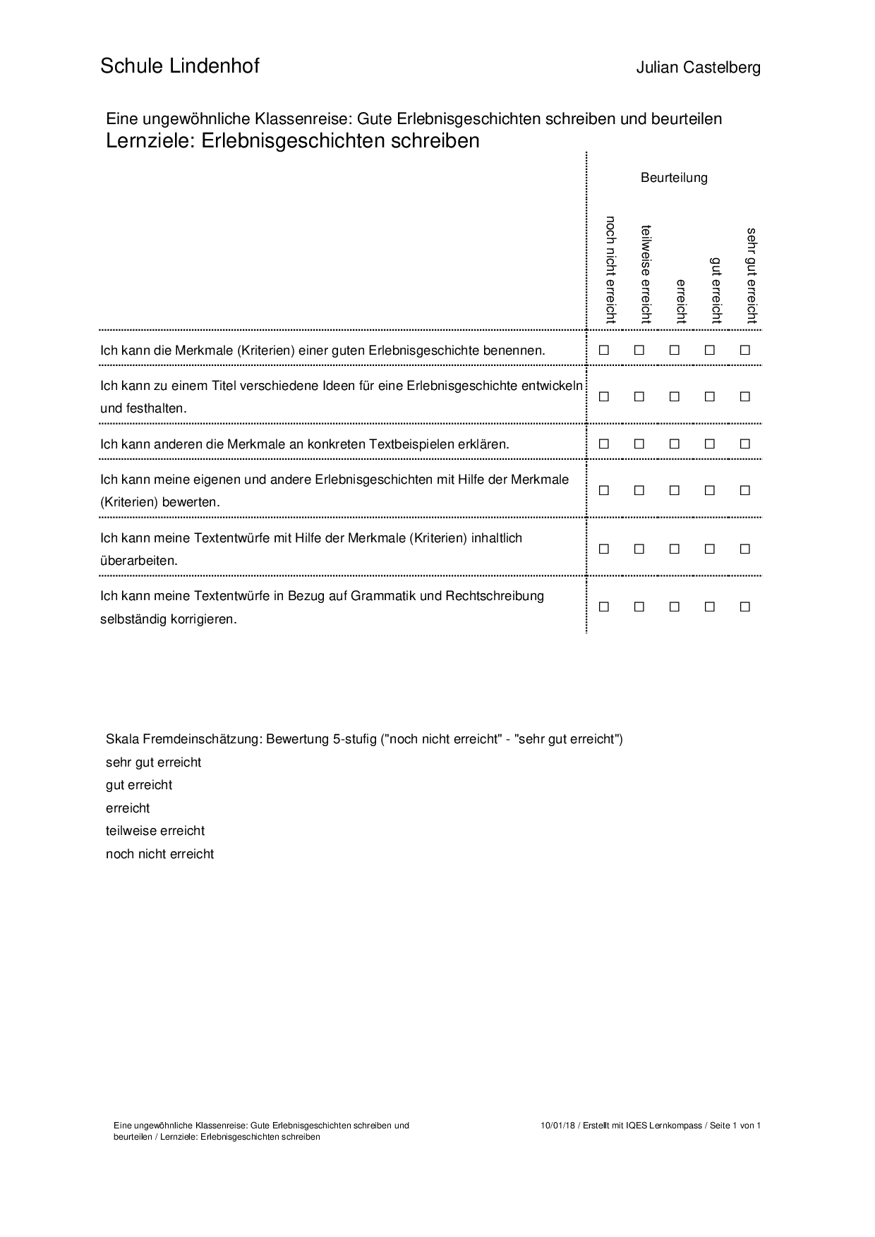 Erreichen kompetenzorientierter Lernziele beurteilen
