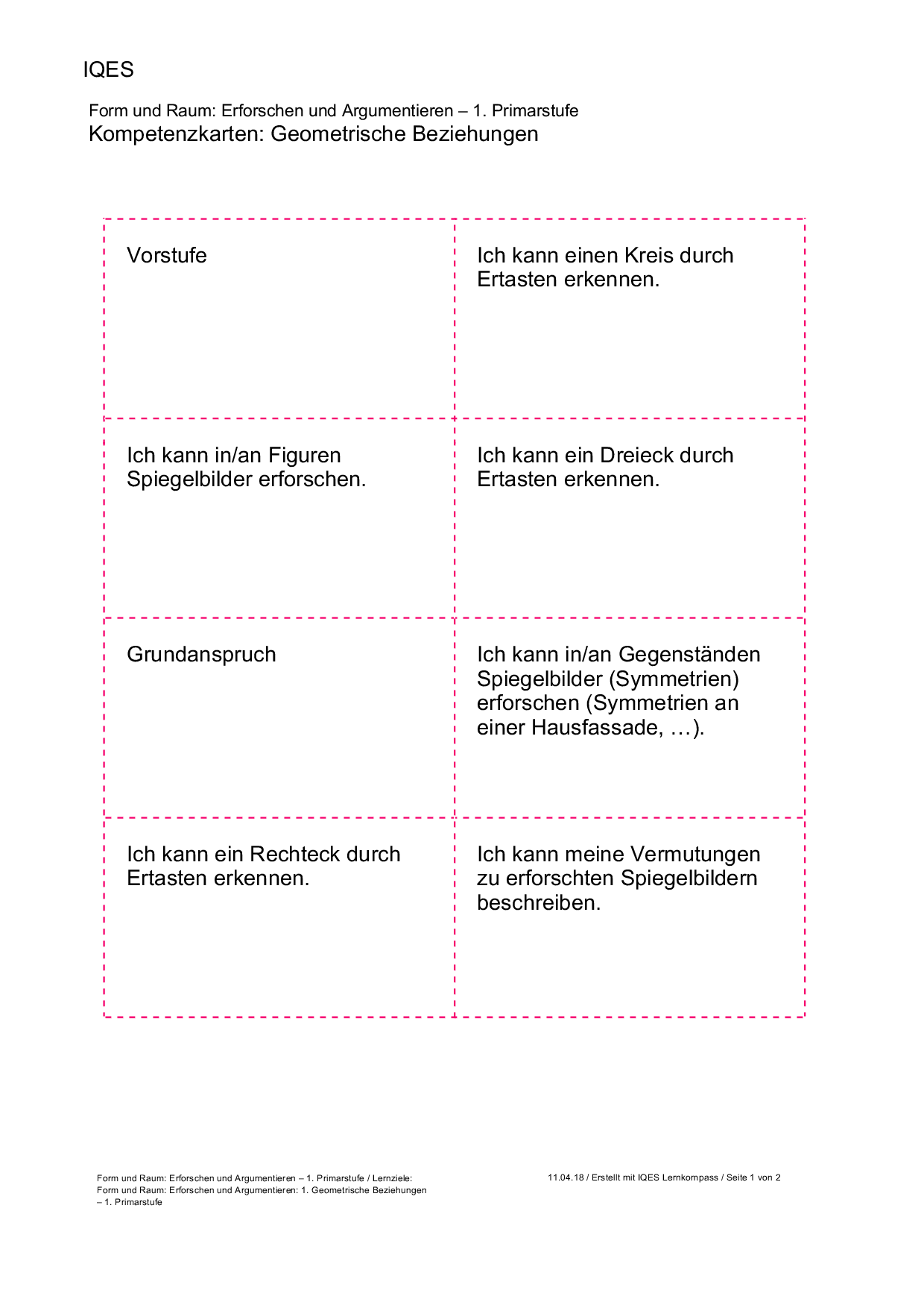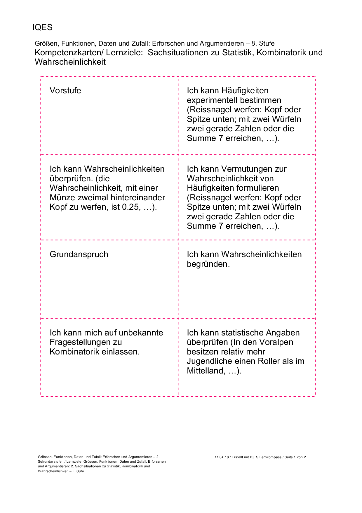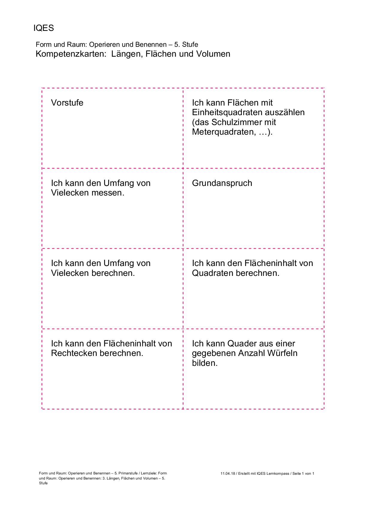 Kompetenzorientierte Lernziele mit Bezug auf Lehr- und Bildungspläne bieten Lernenden Orientierung vor- und während des Lernprozesses. Sie unterstützen die Lehrperson dabei, geeignete Wege, Instrumente und Strategien anzubieten, damit diese Ziele auch erreicht werden können und Kompetenzen sichtbar werden. Ich kann-Formulierungen helfen Kindern/Jugendlichen zu erkennen und zu überprüfen, über welche Teilkompetenzen sie schon verfügen und Klarheit darüber zu gewinnen, welche sie noch erwerben können und müssen. Kompetenzorientiert formuliert werden Ziele beobachtbar und damit auch überprüfbar.