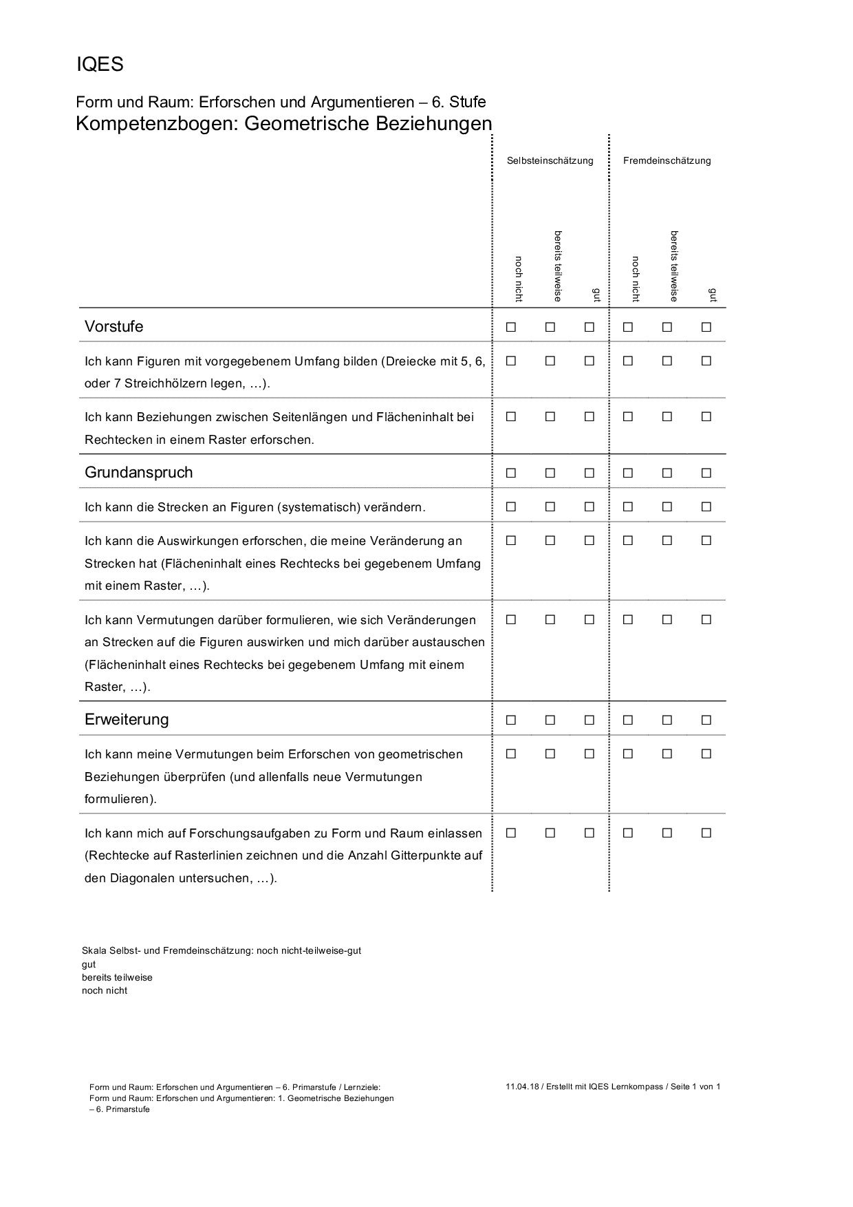 Kompetenzorientierte Lernziele sind wichtige Bezugspunkte für formatives Feedback und Selbstbewertung und legen sachliche Bezugsnormen für die summative Beurteilung des Kompetenzstands fest. Das ist anspruchsvoll für die Lehrperson, da sie sich bereits zu Beginn eines Lernsettings vergewissern muss, ob und auf welche Art und Weise die formulierten Lernziele auch wirklich überprüfbar sind.