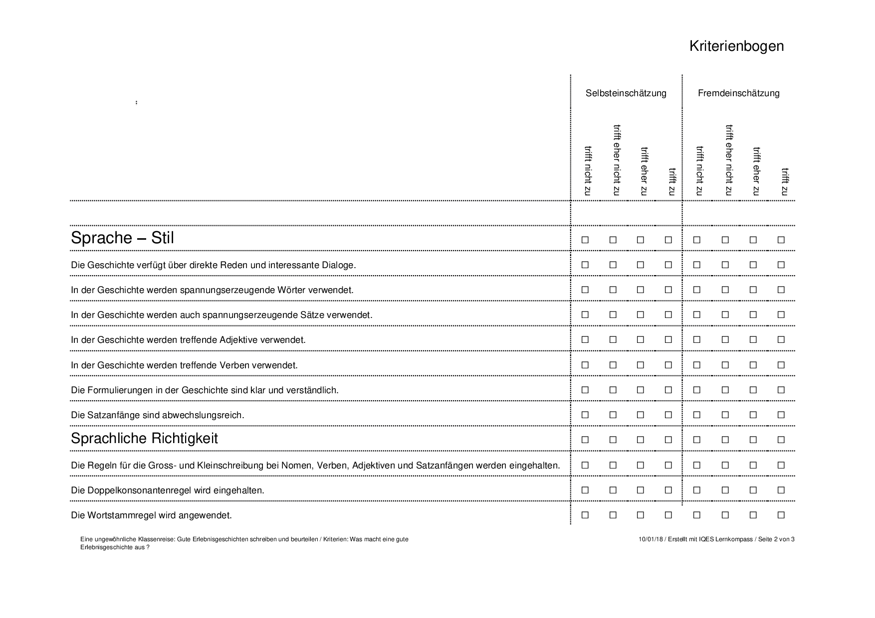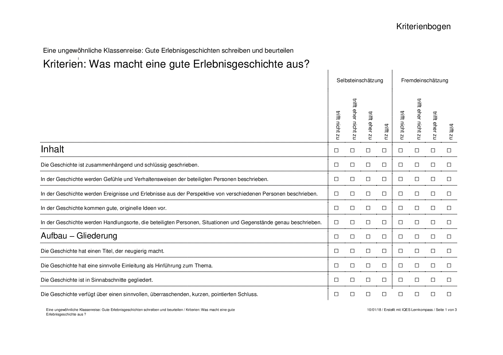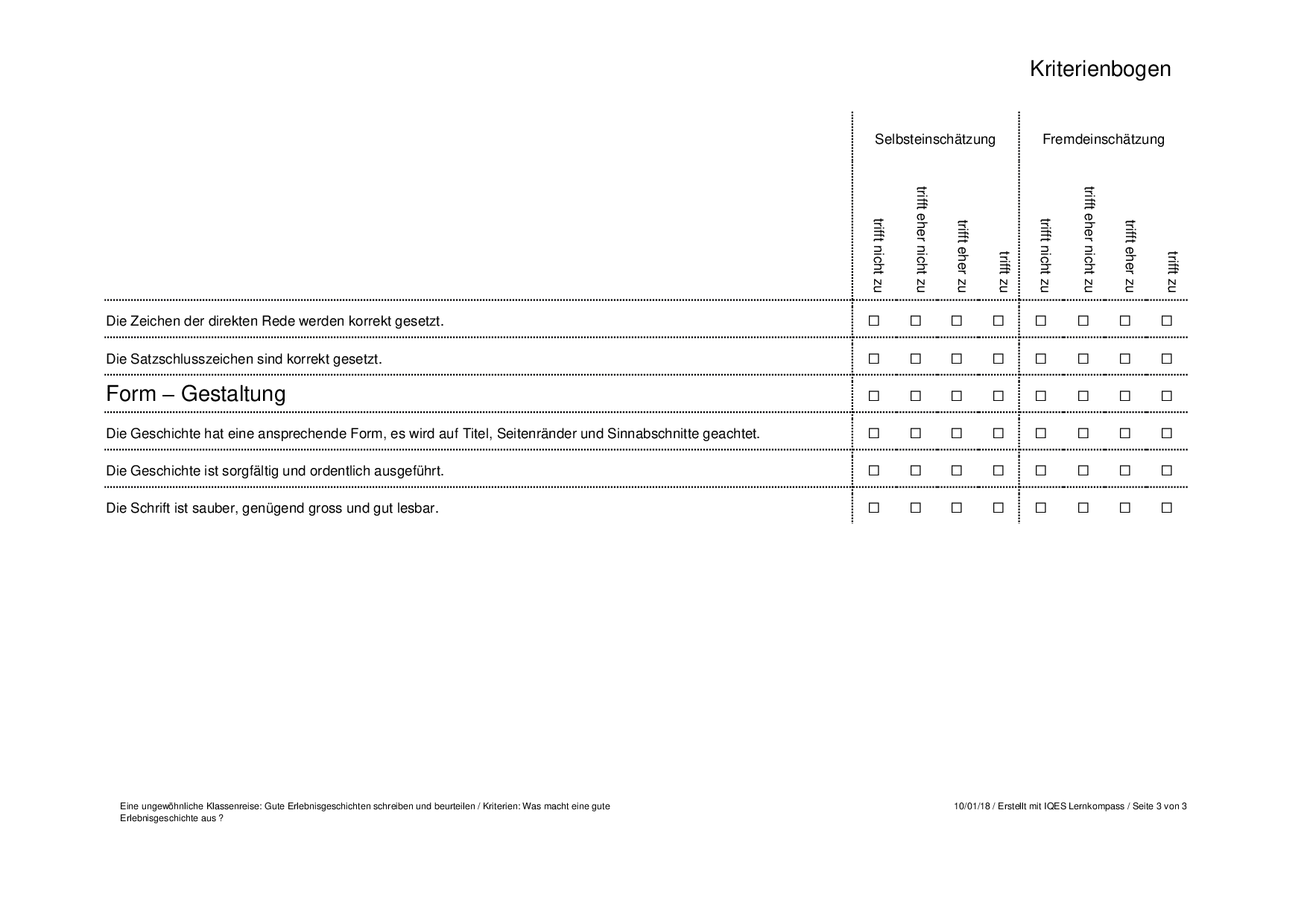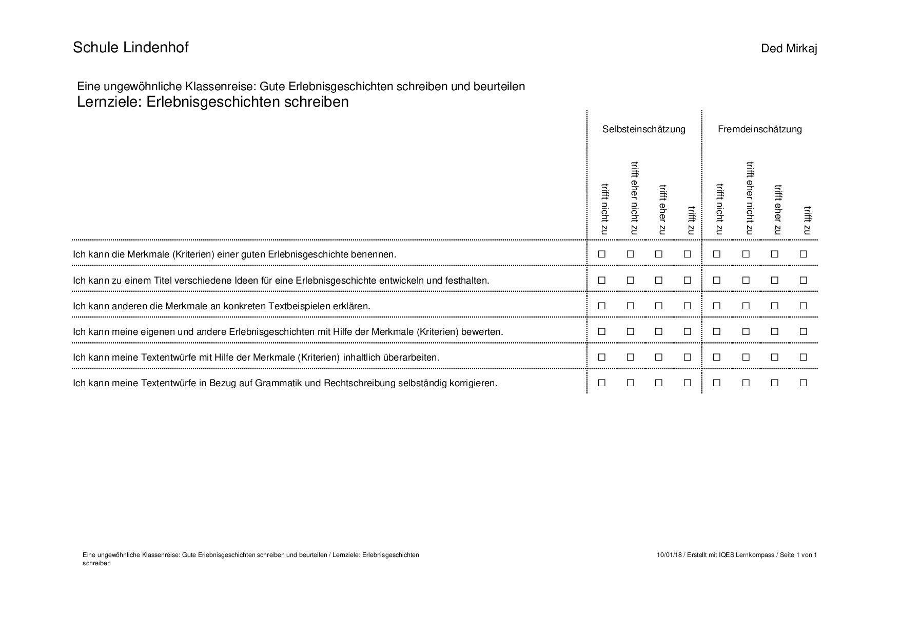 Bewertungsbogen mit kompetenzorientierten Lernzielen bieten eine einfache Struktur für den Lerndialog. Sie übersetzen Kompetenzen in eine verständliche Lernziel-Sprache und fördern lernwirksame Vergleiche zwischen Selbst- und Fremdeinschätzung.