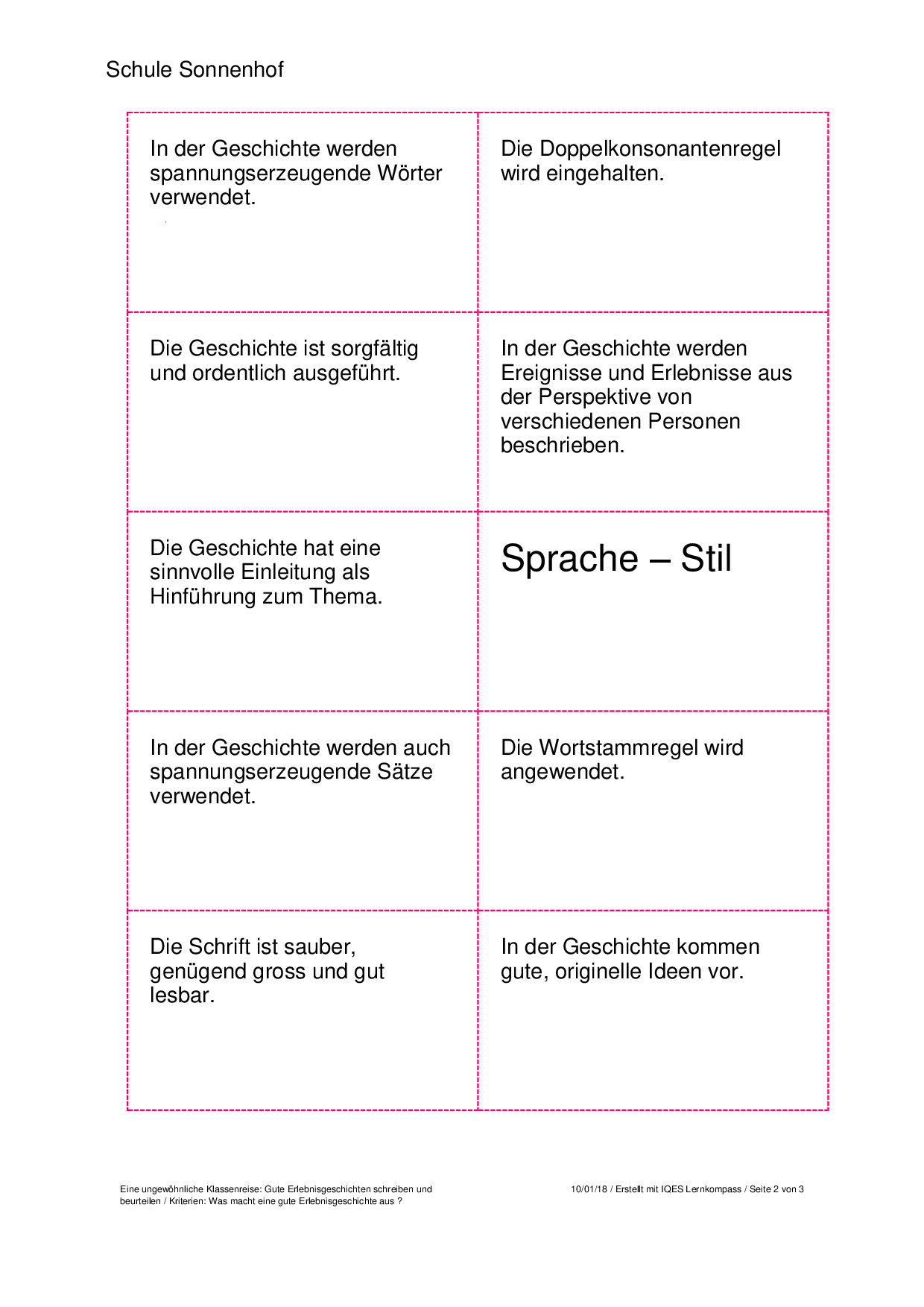 Wenn schulisches Lernen mehr sein soll als sich von Hürde zu Hürde zu schleppen, brauchen die Schülerinnen und Schüler Erfolgserlebnisse. Immer und immer wieder. Die Schule muss als erfolgreich und Sinn stiftend erlebt werden. Bezogen auf Standards heisst das nun: Standards müssen nicht nur eine Orientierungshilfe sein, sie müssen auch Erfolge garantieren. Kompetenzraster können helfen, dieses Ziel zu erreichen.