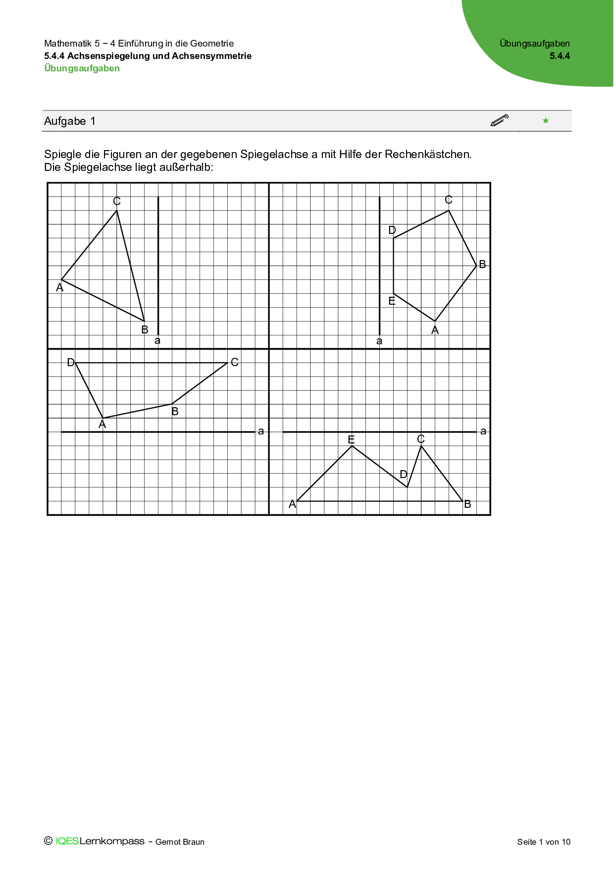 5.4.4 Achsenspiegelung und Achsensymmetrie – Übungsaufgaben mit Lösungen