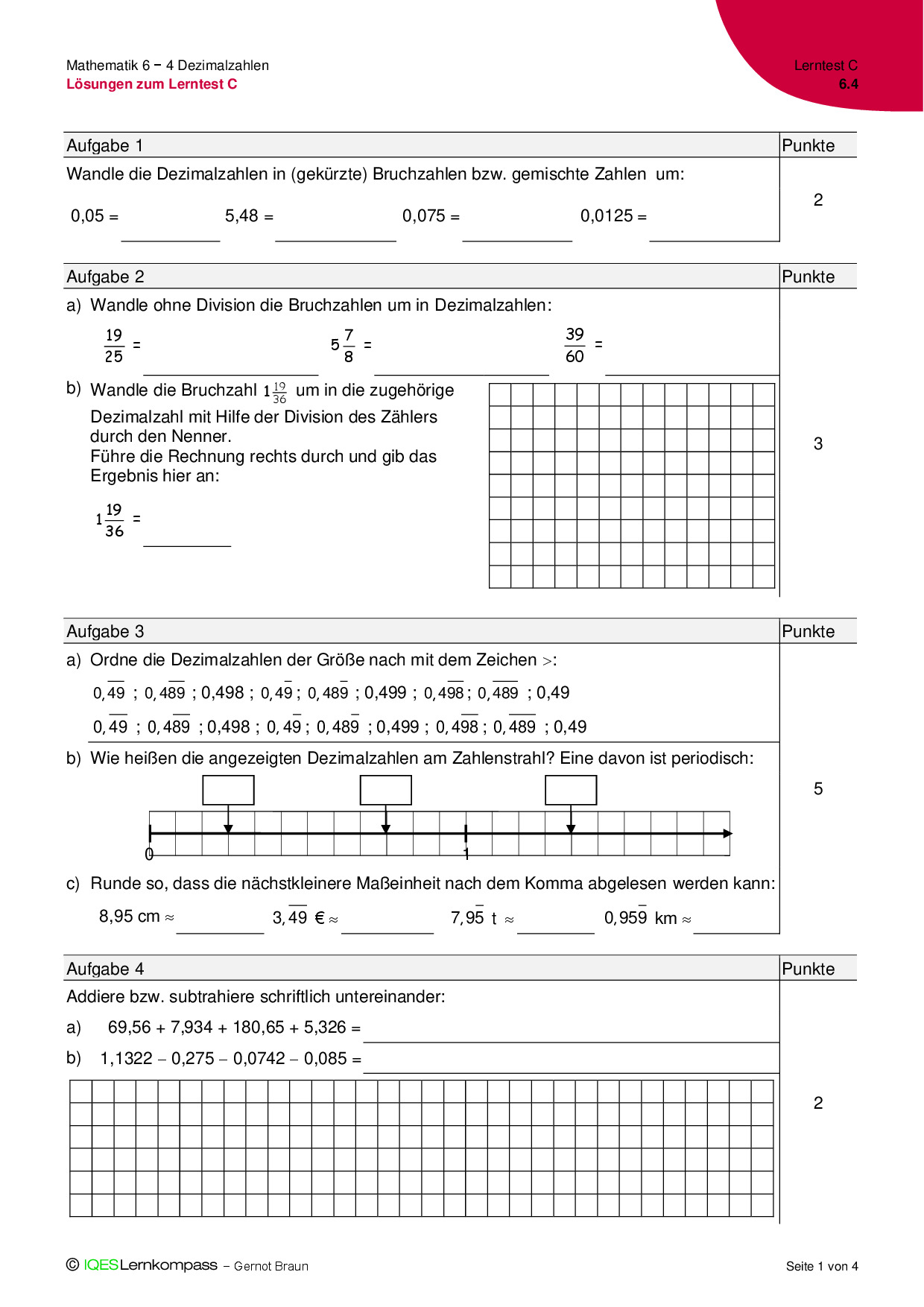 6.4 Dezimalzahlen – Lösungen zum Lerntest C