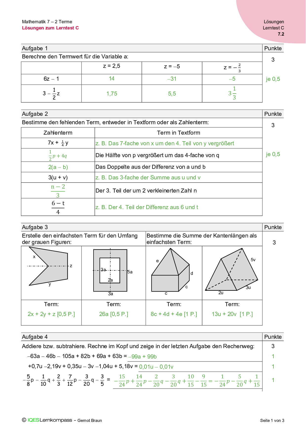 7.2 Terme – Lösungen zum Aufgabenpool für Abschlusstests