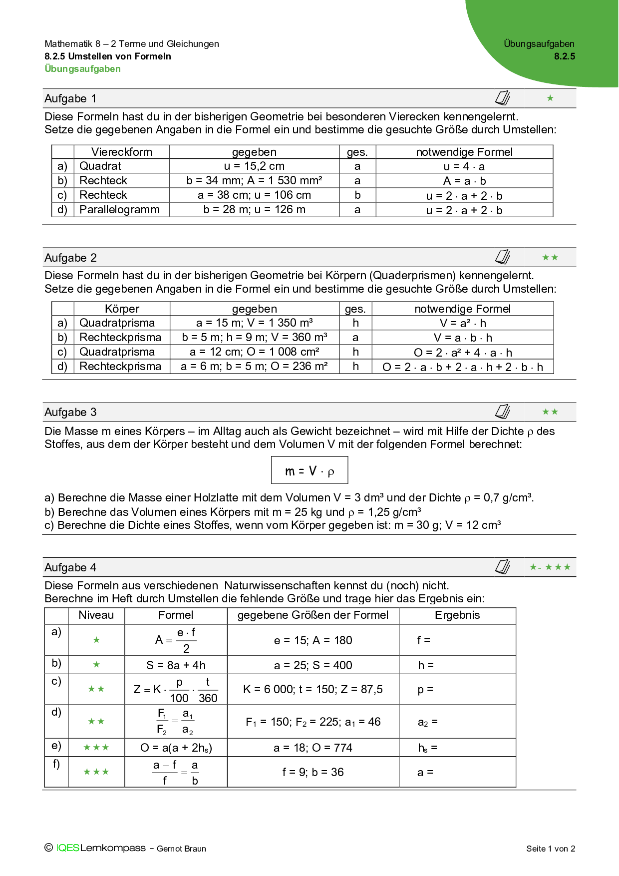 8.2.5 Umstellen von Formeln – Übungsaufgaben