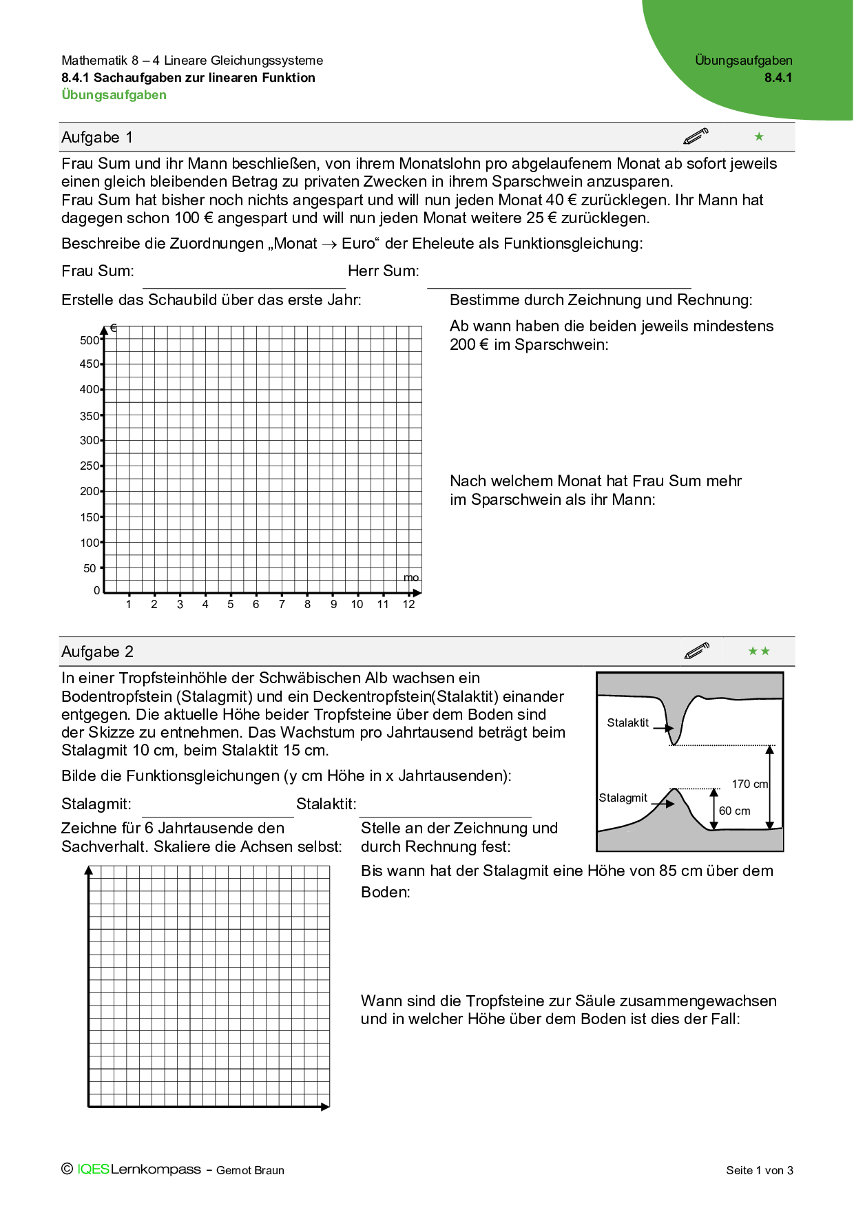 8.4.1 Sachaufgaben zur linearen Funktion – Übungsaufgaben mit Lösungen