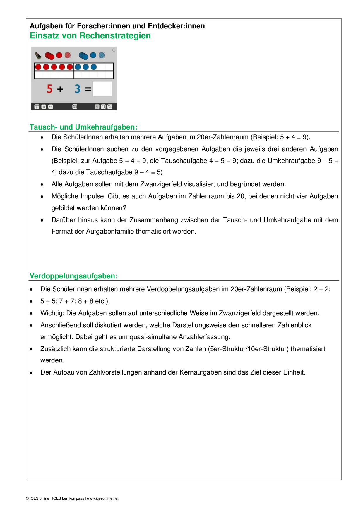 - nicht zählende Rechenstrategien entdecken und sich aneignen.