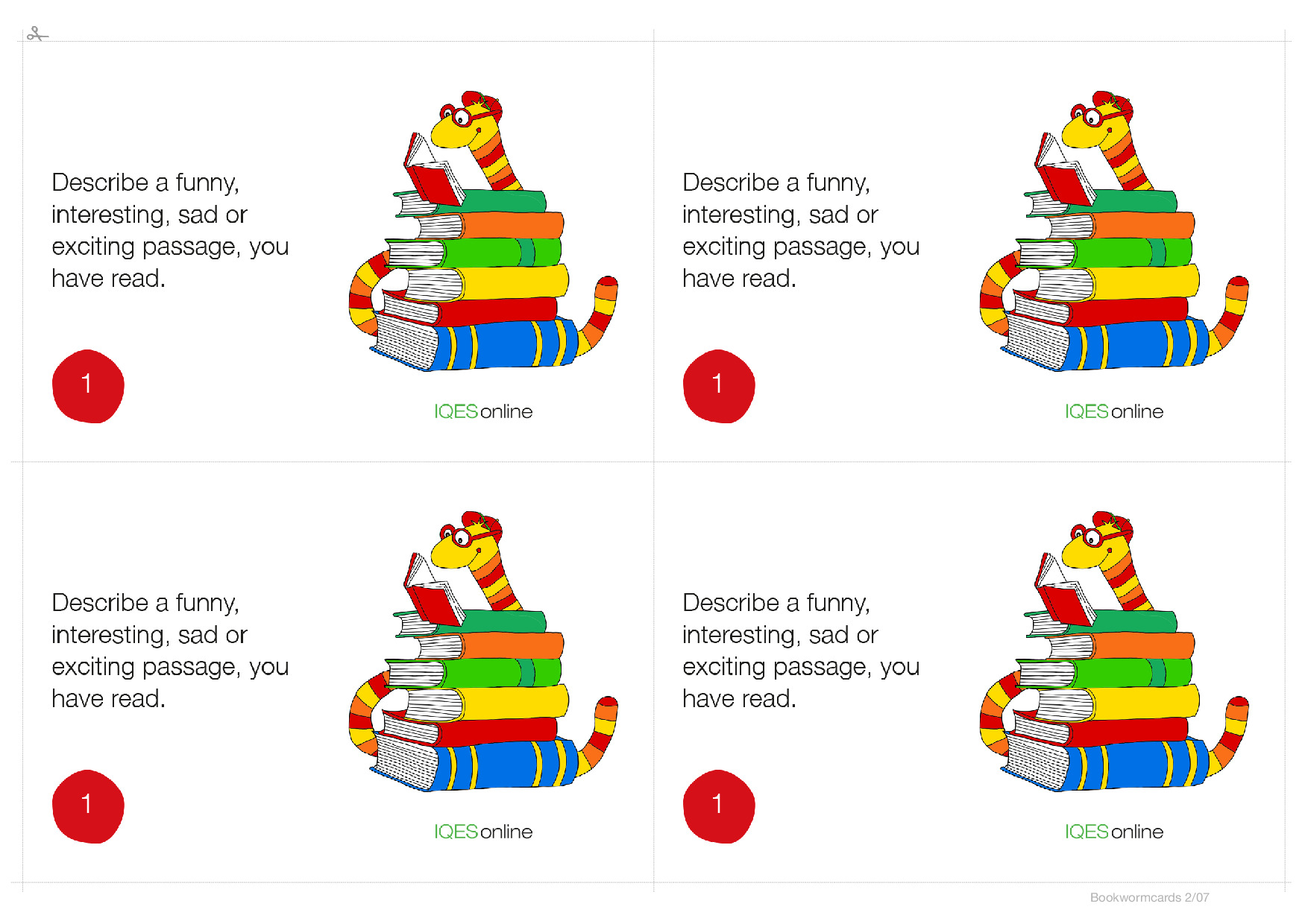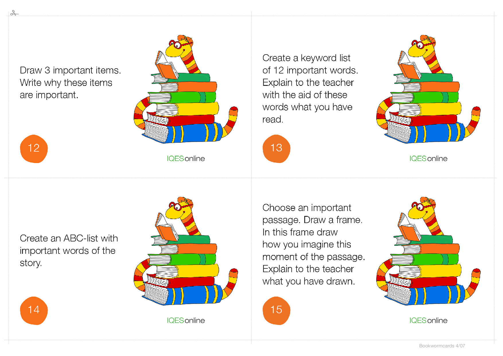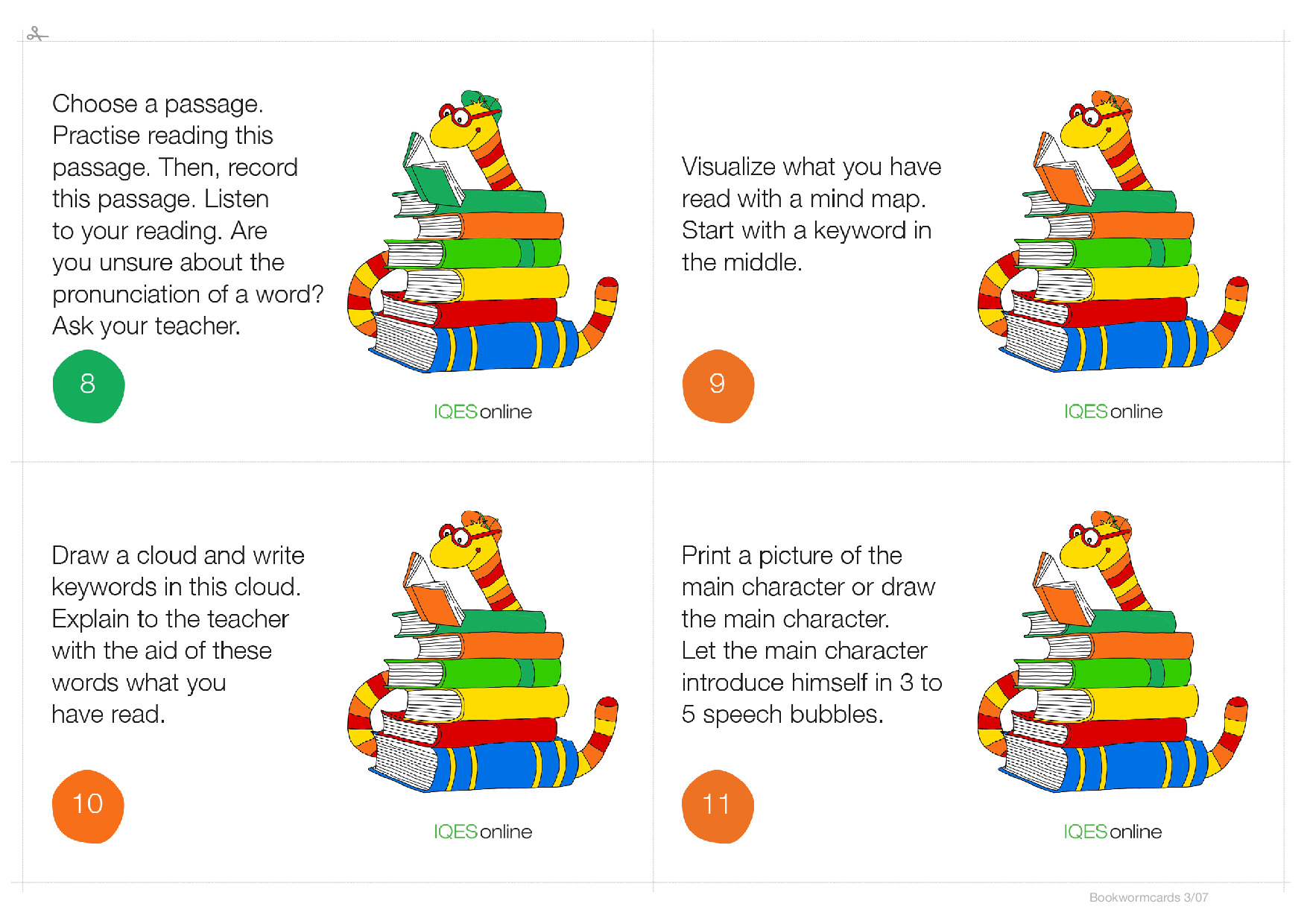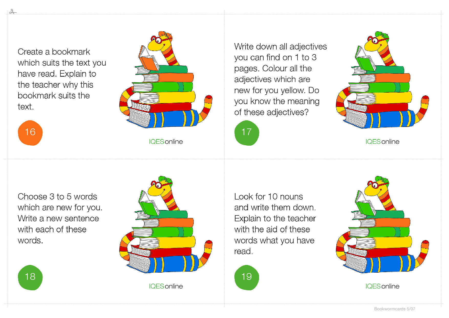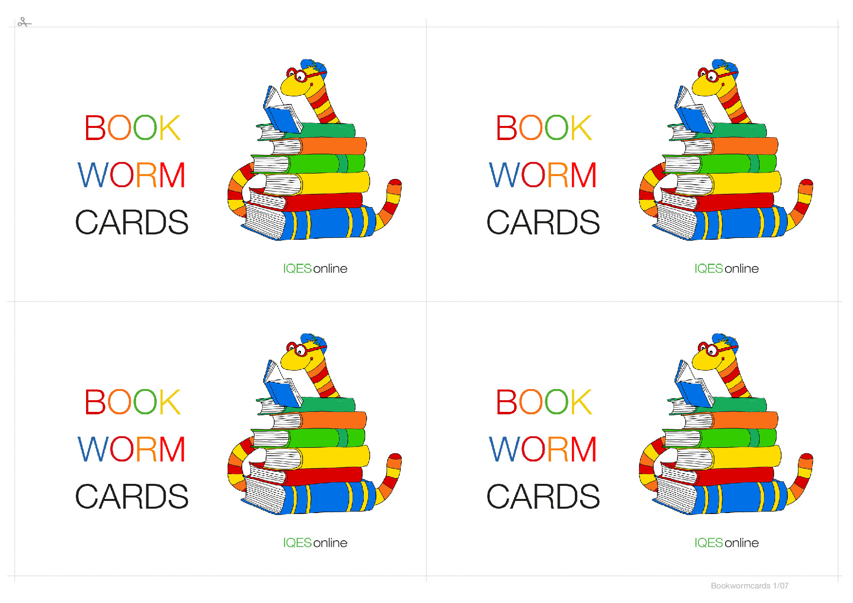 In diesem Dokument befindet sich eine Vorlage, um einen ganzen Klassensatz von Bookwormcards zu kopieren. Es befinden sich vier Karten der gleichen Bookwormcard auf einer Seite.