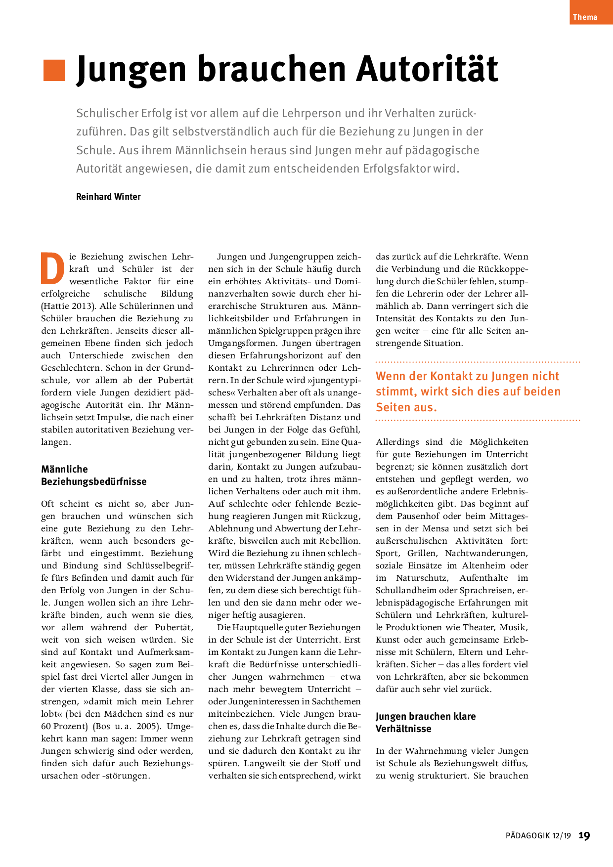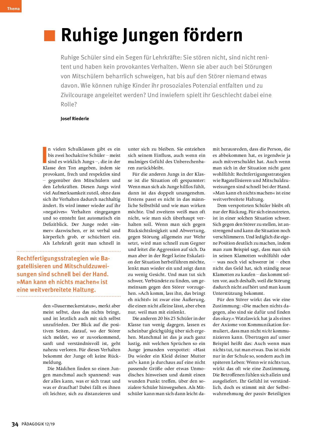 Artikel aus der Zeitschrift PÄDAGOGIK 12/19