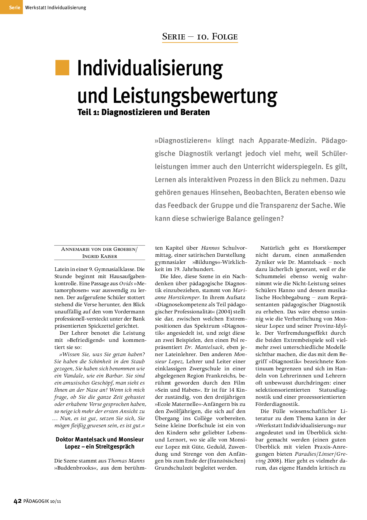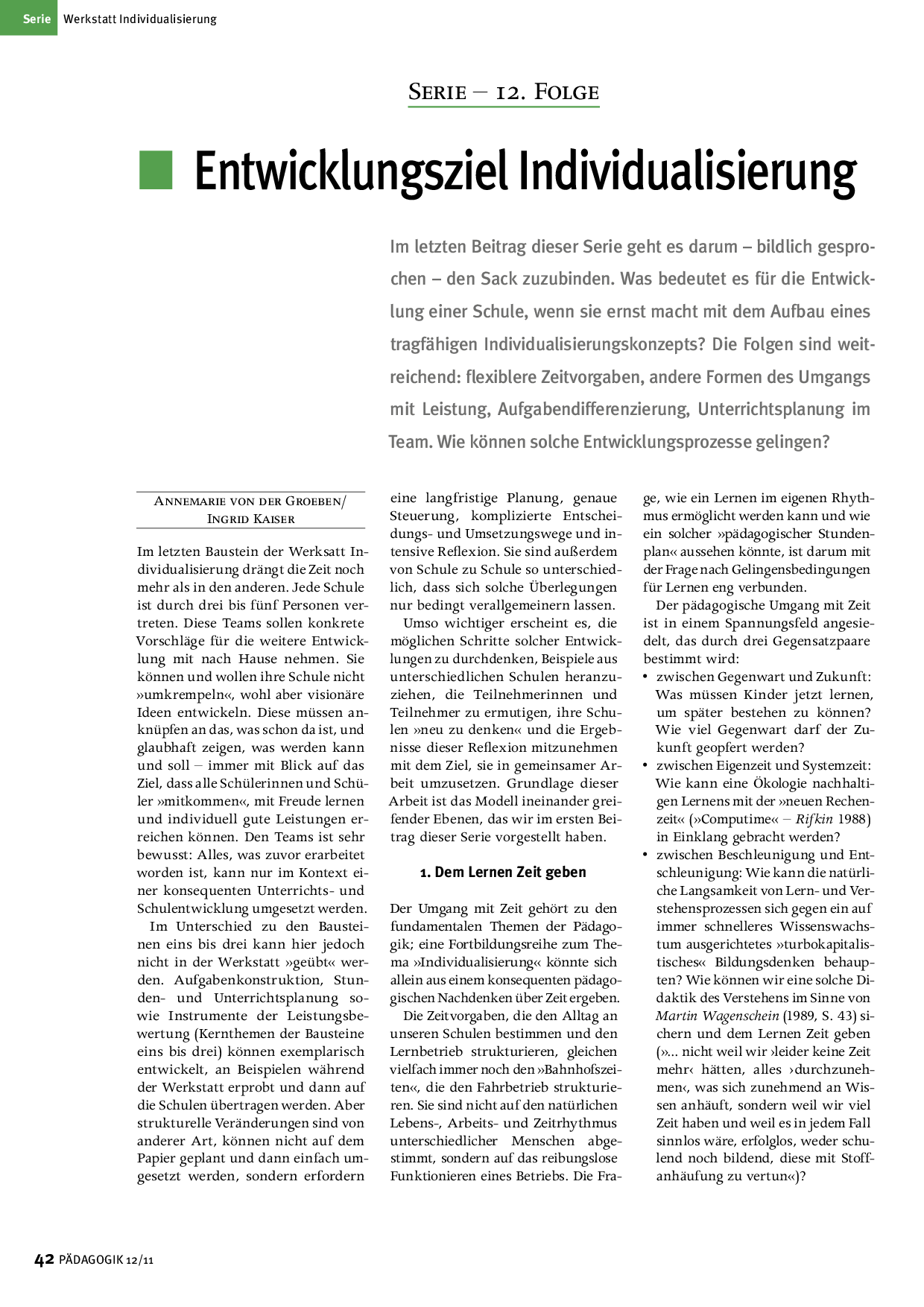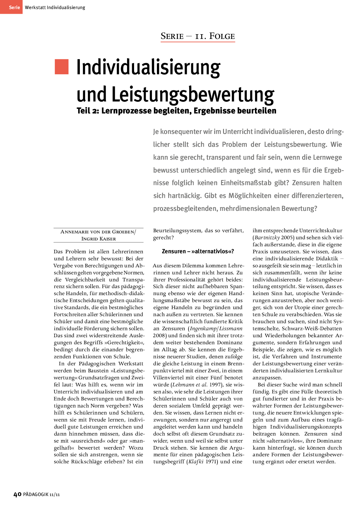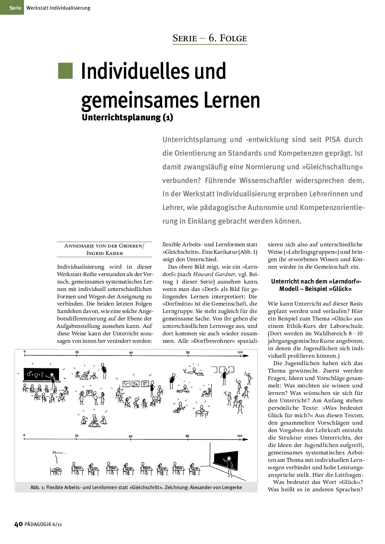 Aus: Werkstatt Individualisierung, PÄDAGOGIK 1-12/11