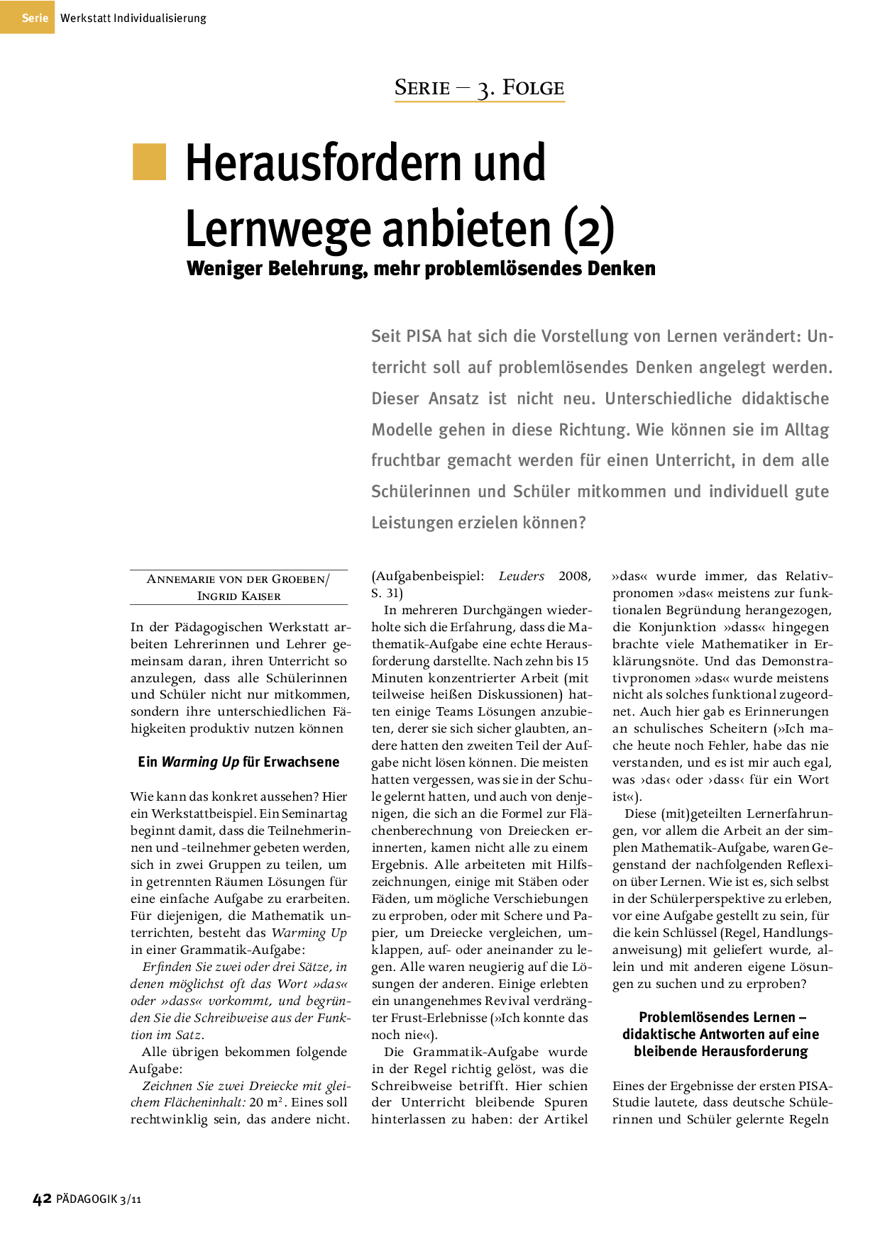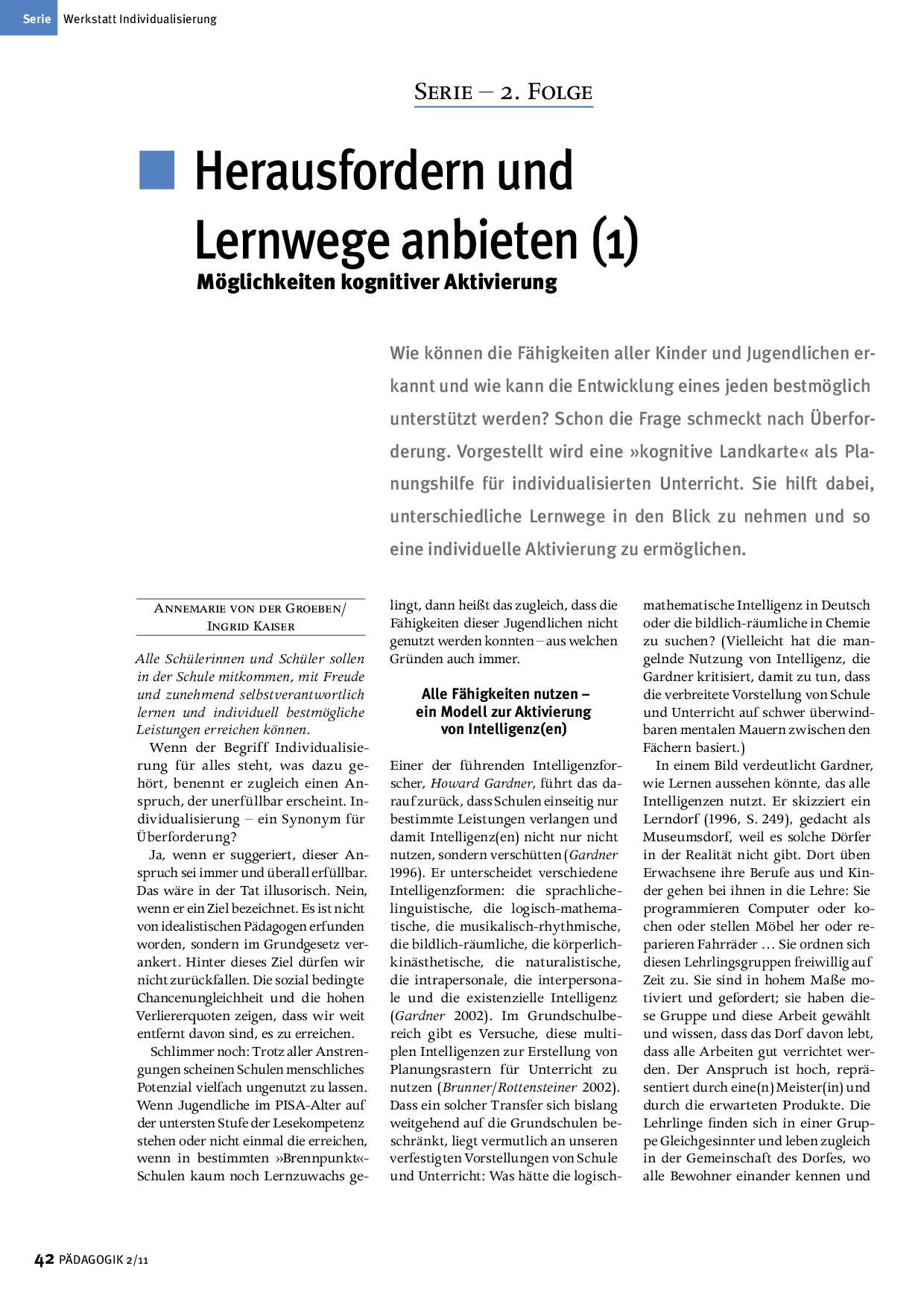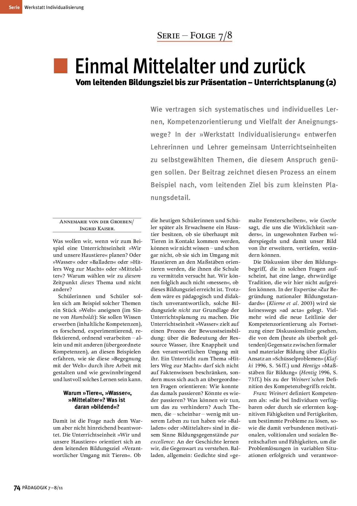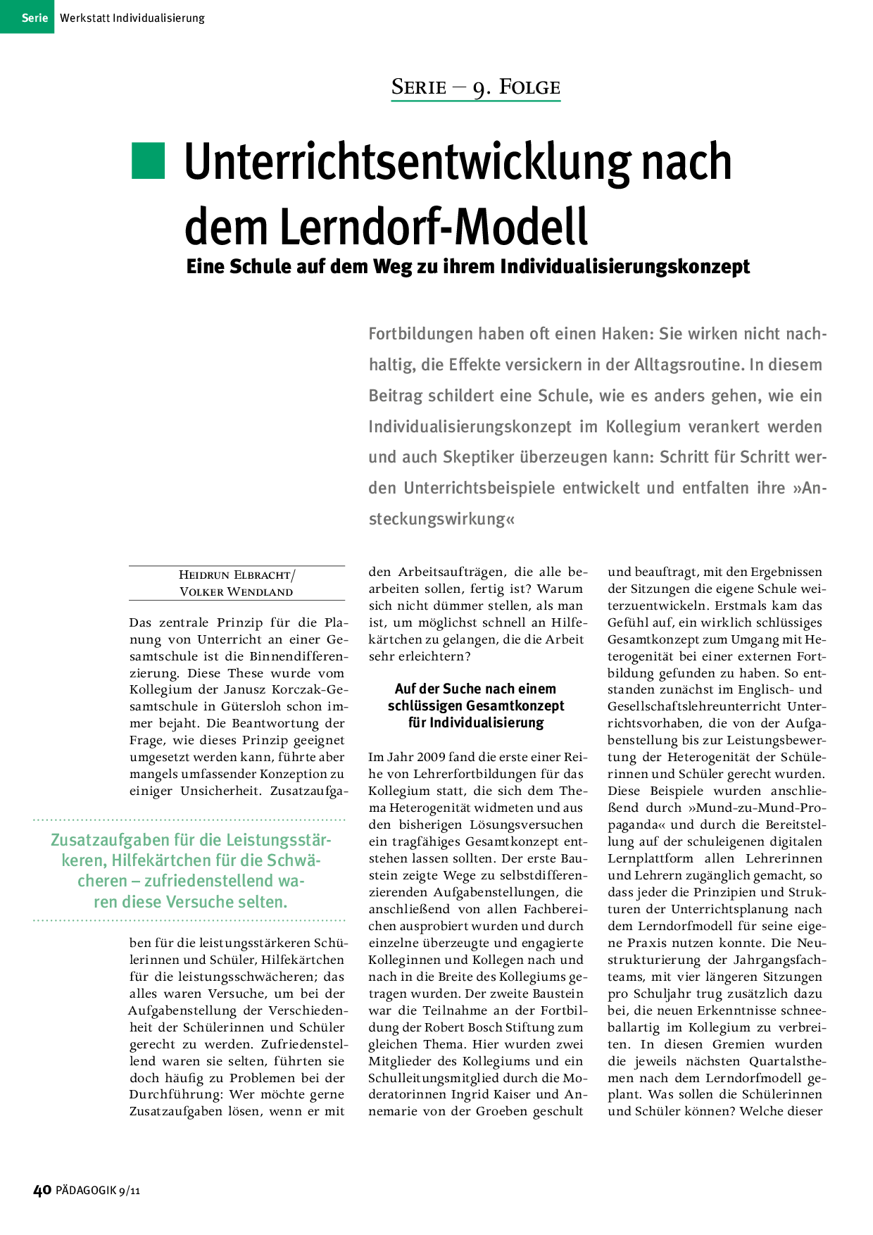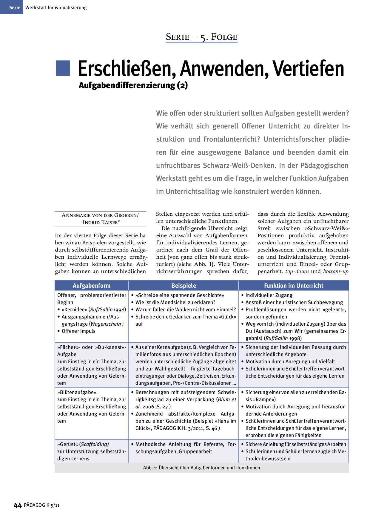 Aus: Werkstatt Individualisierung, PÄDAGOGIK 1-12/11
