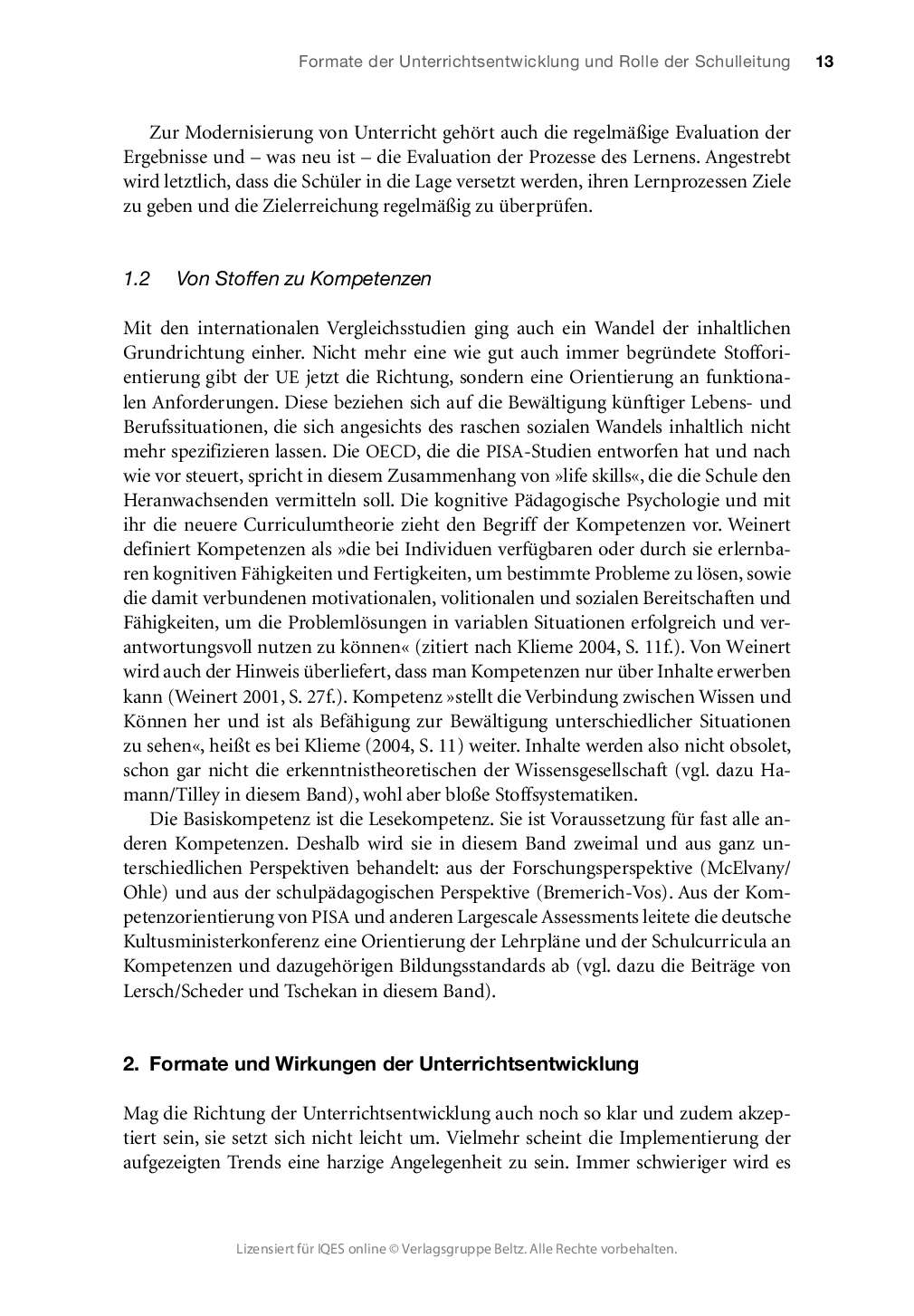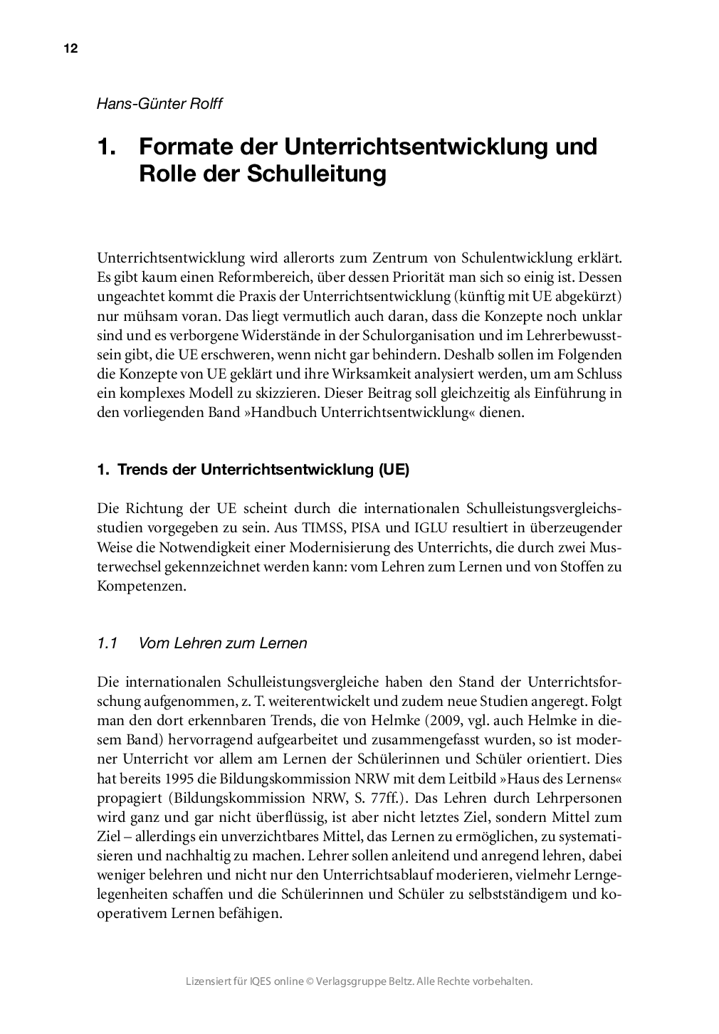 Formate der Unterrichtsentwicklung und Rolle der Schulleitung