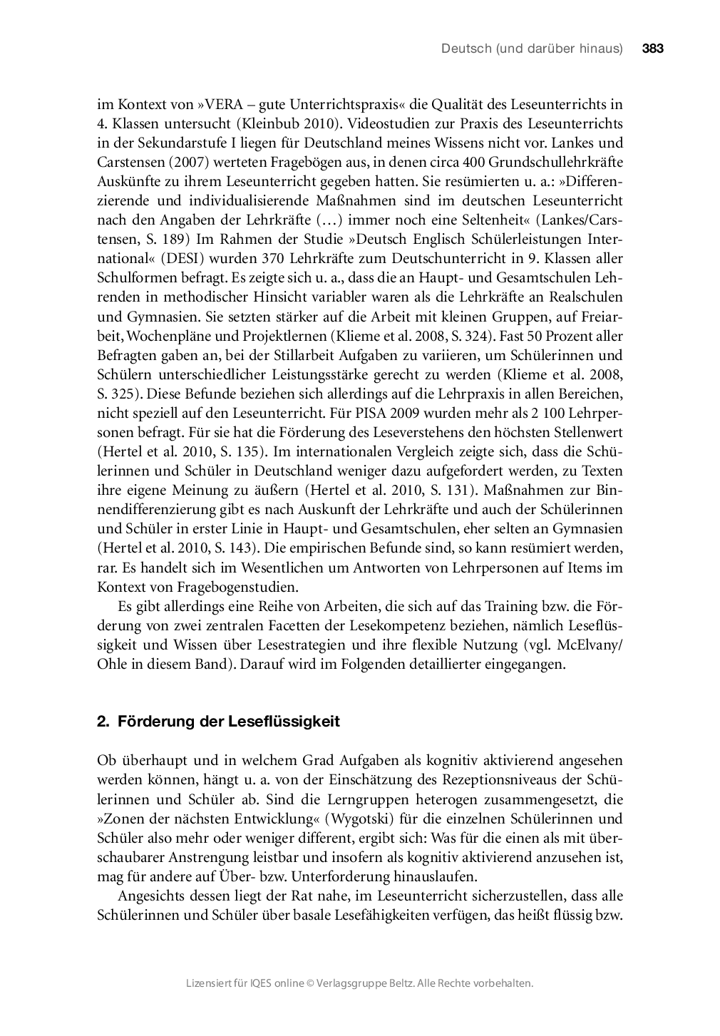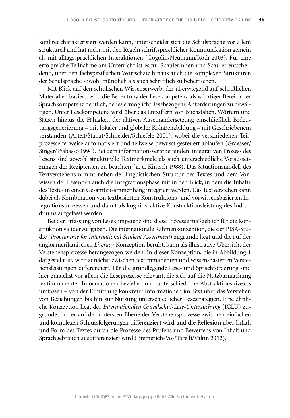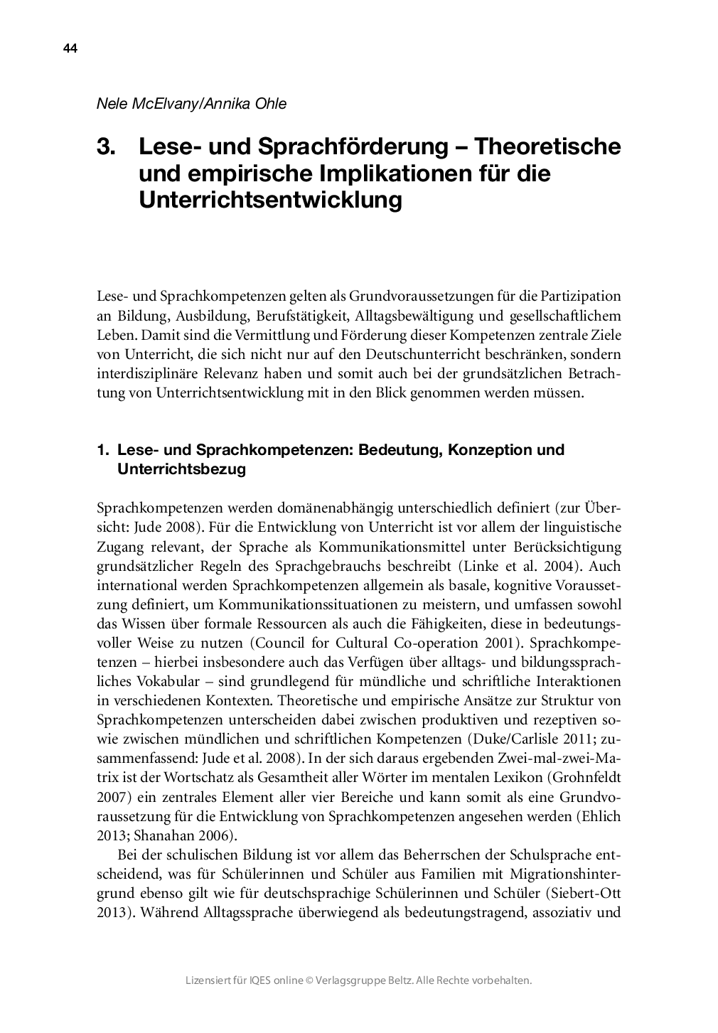 Lese- und Sprachkompetenzen gelten als Grundvoraussetzungen für die Partizipation an Bildung, Ausbildung, Berufstätigkeit, Alltagsbewältigung und gesellschaftlichem Leben. Damit sind die Vermittlung und Förderung dieser Kompetenzen zentrale Ziele von Unterricht, die sich nicht nur auf den Deutschunterricht beschränken, sondern interdisziplinäre Relevanz haben und somit auch bei der grundsätzlichen Betrachtung von Unterrichtsentwicklung mit in den Blick genommen werden müssen.