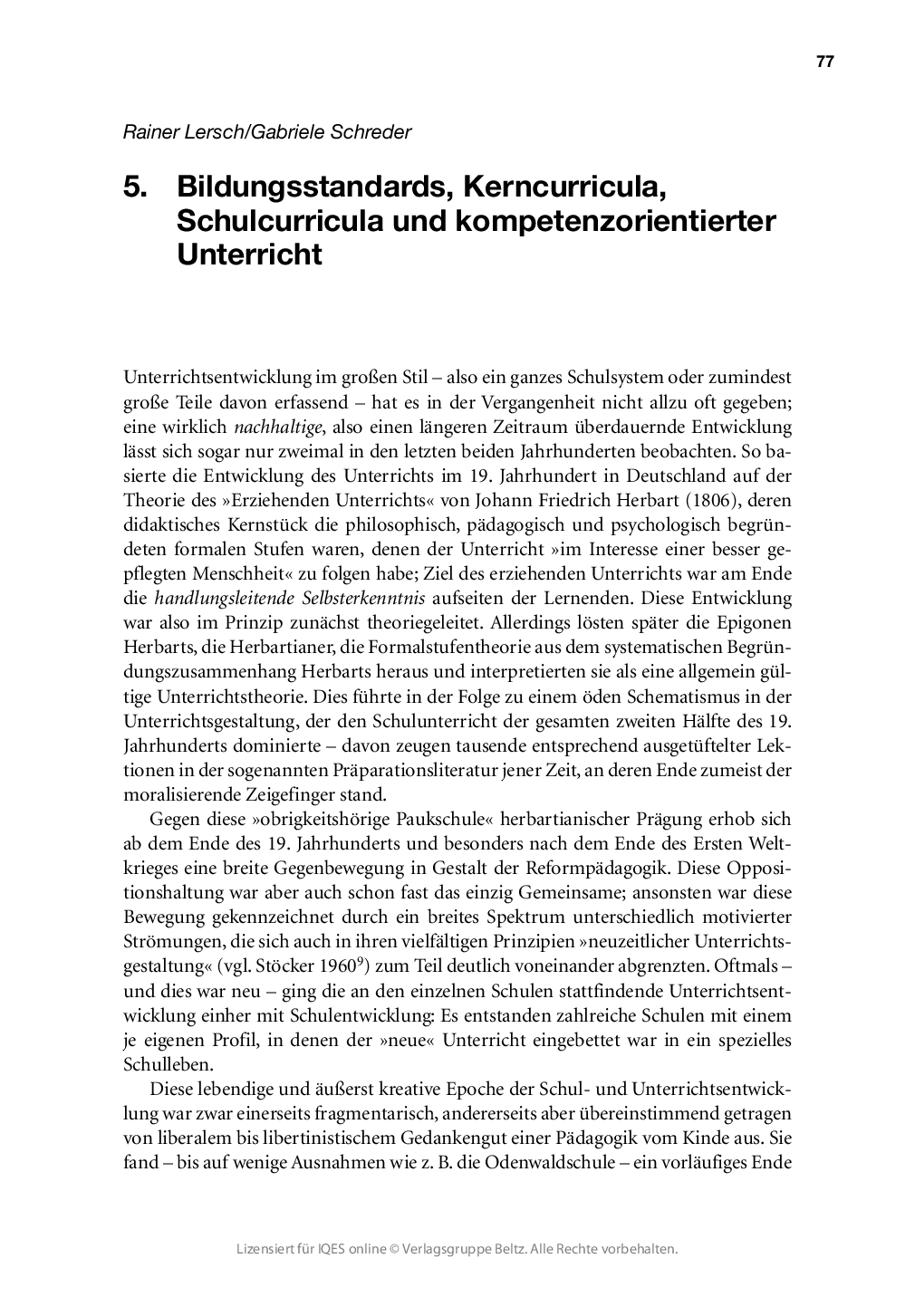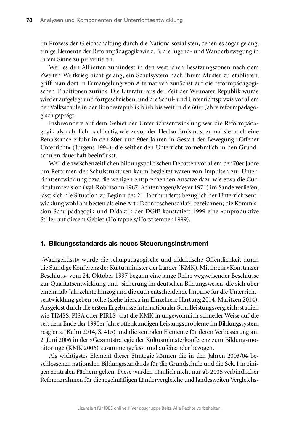 Unterrichtsentwicklung im großen Stil – also ein ganzes Schulsystem oder zumindest große Teile davon erfassend – hat es in der Vergangenheit nicht allzu oft gegeben; eine wirklich nachhaltige, also einen längeren Zeitraum überdauernde Entwicklung lässt sich sogar nur zweimal in den letzten beiden Jahrhunderten beobachten. So basierte die Entwicklung des Unterrichts im 19. Jahrhundert in Deutschland auf der Theorie des »Erziehenden Unterrichts« von Johann Friedrich Herbart (1806), deren didaktisches Kernstück die philosophisch, pädagogisch und psychologisch begründeten formalen Stufen waren, denen der Unterricht »im Interesse einer besser gepflegten Menschheit« zu folgen habe; Ziel des erziehenden Unterrichts war am Ende die handlungsleitende Selbsterkenntnis aufseiten der Lernenden.