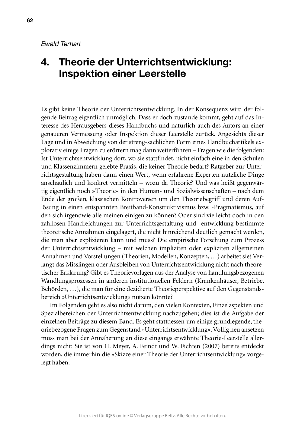 Das »Handbuch Unterrichtsentwicklung« ist ein unverzichtbares Nachschlagwerk. Es zeichnet die jüngere Geschichte des Forschungszweigs nach und gibt den aktuellen Stand der Forschung wieder. Die dominierenden und bewährten Konzepte der fachlichen und überfachlichen Unterrichtsentwicklung werden von renommierten Experten/-innen erläutert und diskutiert. Ausgewählte Autoren/-innen: Hans-Günter Rolff, Rolf Arnold, Andreas Helmke, Johannes Bastian, Ewald Terhard, Hilbert Meyer, Heinz Klippert, Annemarie von der Groeben, Olaf-Axel Burow, Michael Schratz, Andreas Müller.