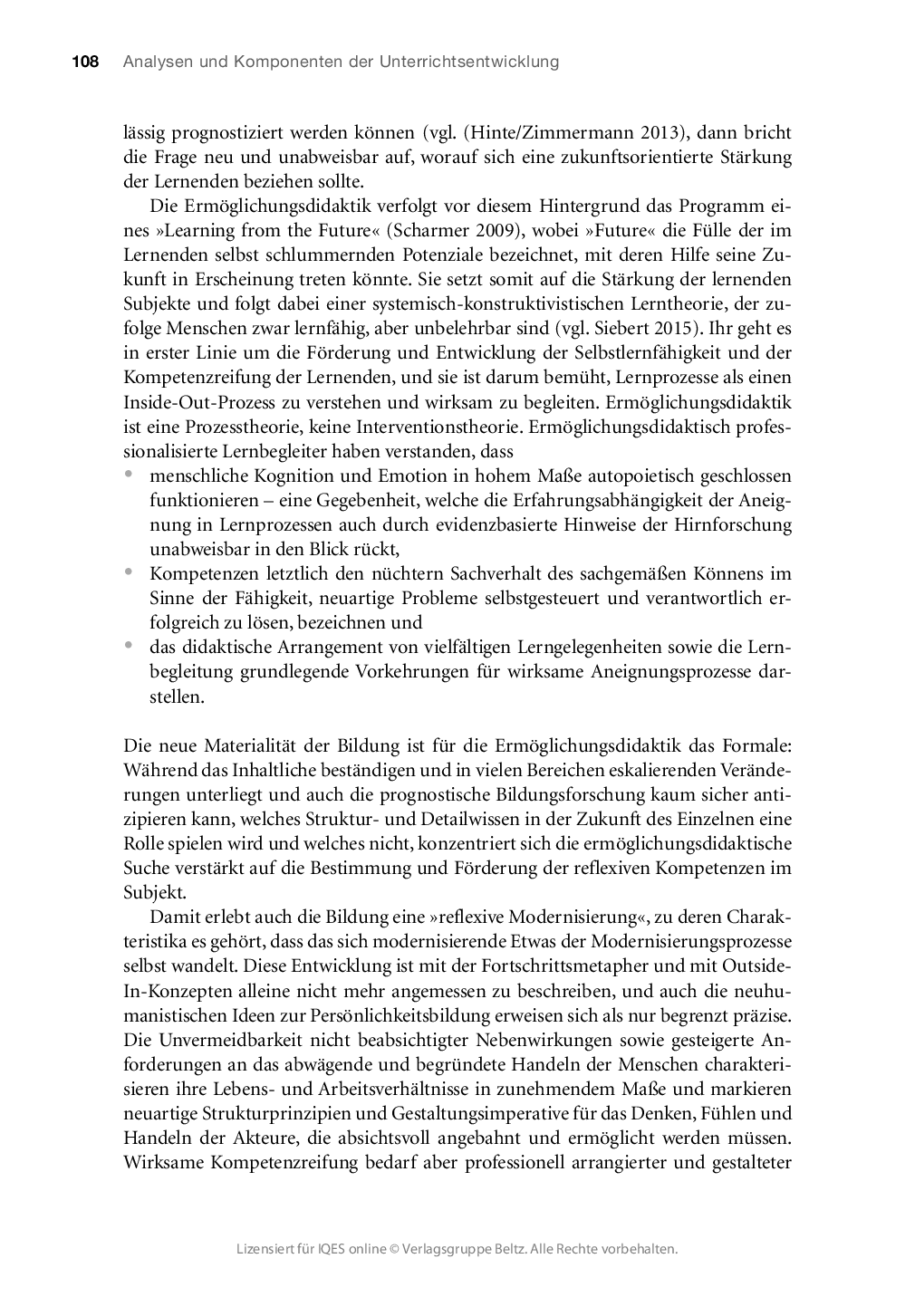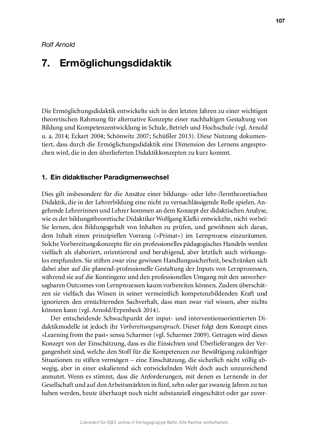 Die Ermöglichungsdidaktik entwickelte sich in den letzten Jahren zu einer wichtigen theoretischen Rahmung für alternative Konzepte einer nachhaltigen Gestaltung von Bildung und Kompetenzentwicklung in Schule, Betrieb und Hochschule (vgl. Arnold u. a. 2014; Eckart 2004; Schönwitz 2007; Schüßler 2013). Diese Nutzung dokumentiert, dass durch die Ermöglichungsdidaktik eine Dimension des Lernens angesprochen wird, die in den überlieferten Didaktikkonzepten zu kurz kommt.