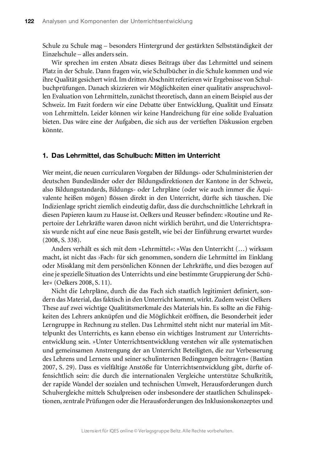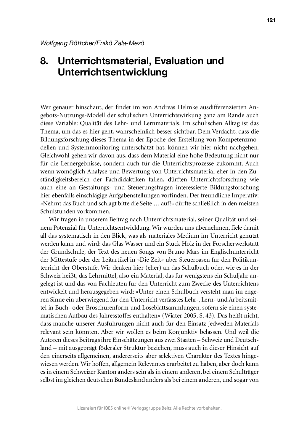 Unterrichtsmaterial, Evaluation und Unterrichtsentwicklung