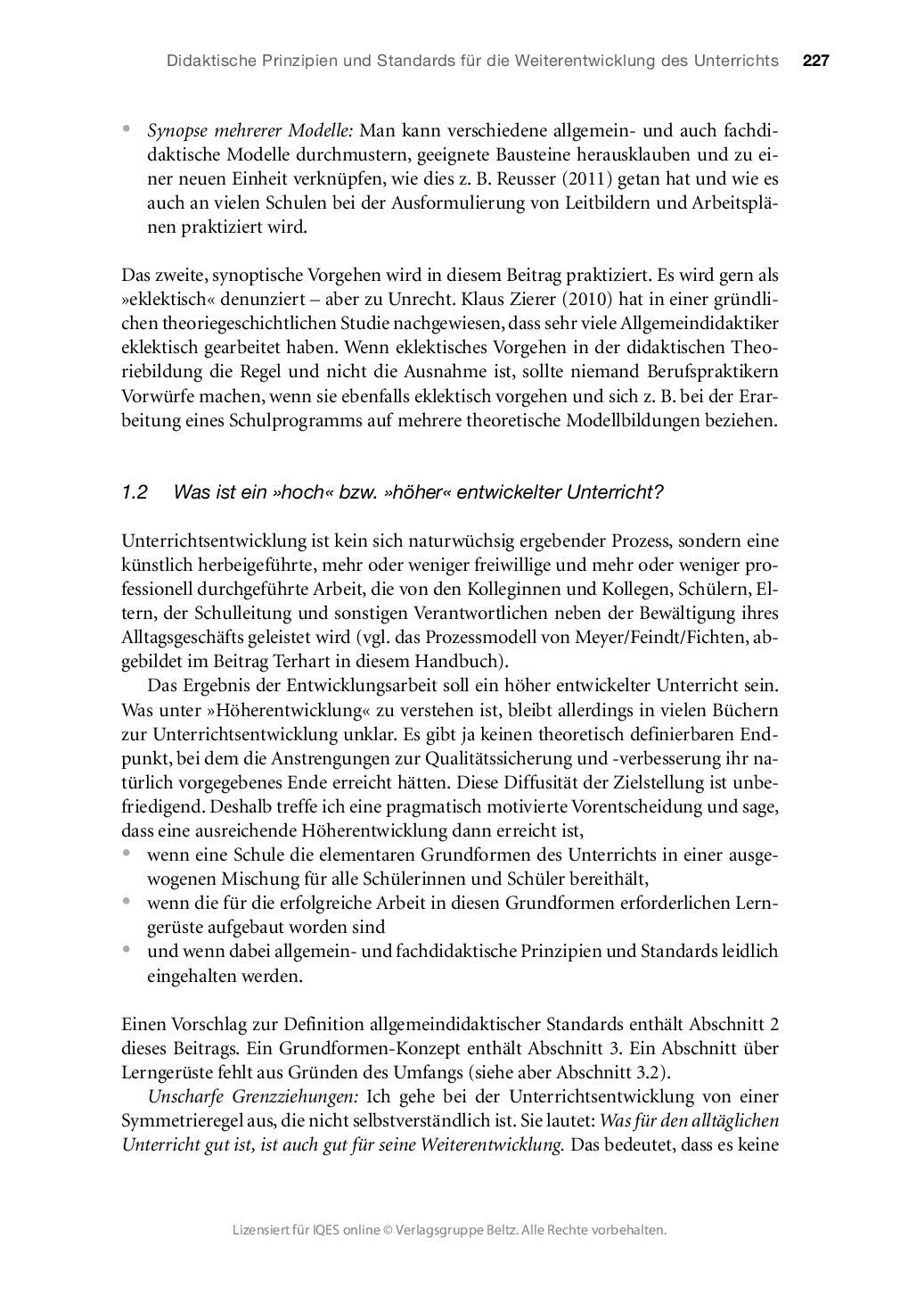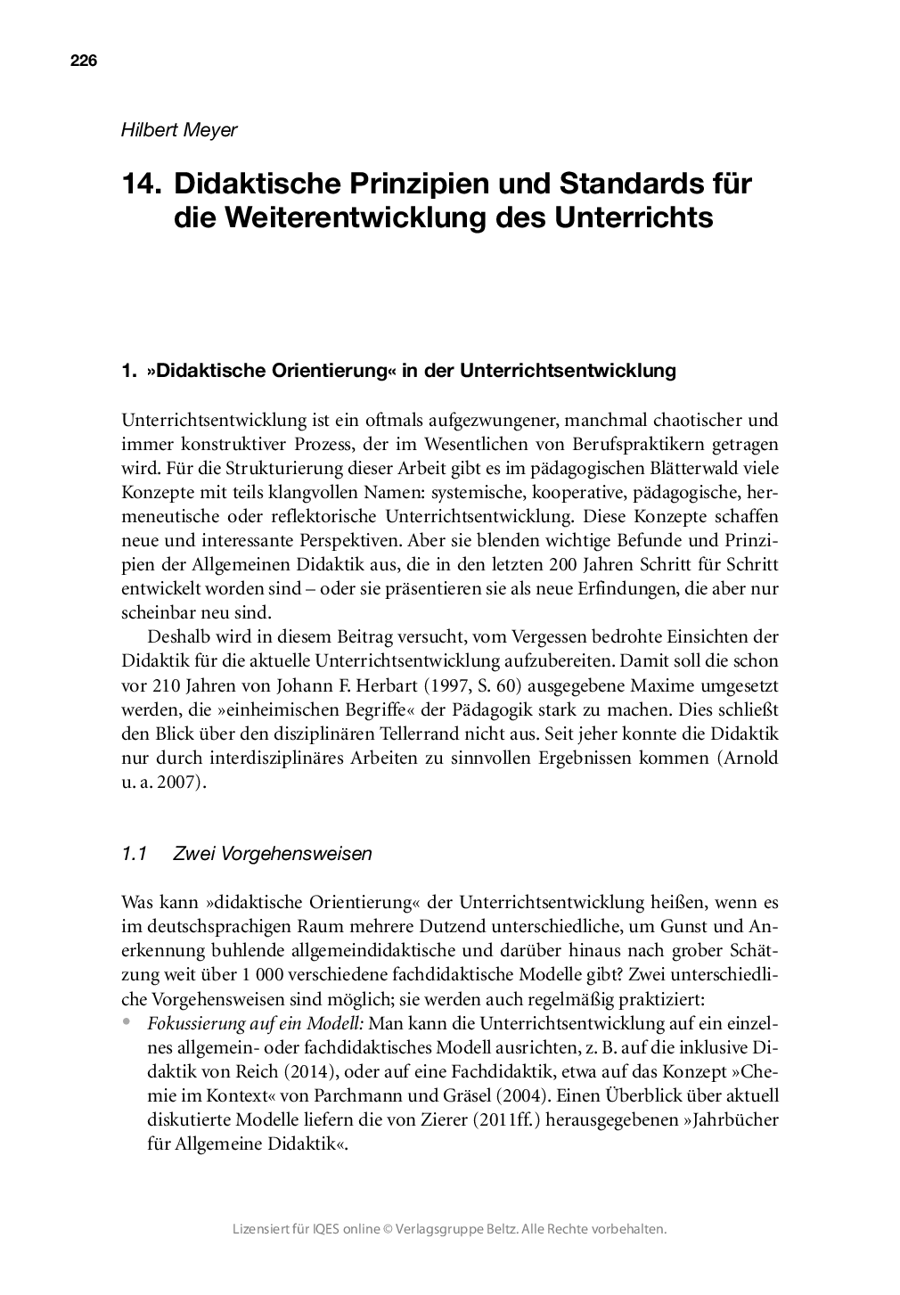 Didaktische Prinzipien und Standards für die Weiterentwicklung des Unterrichts