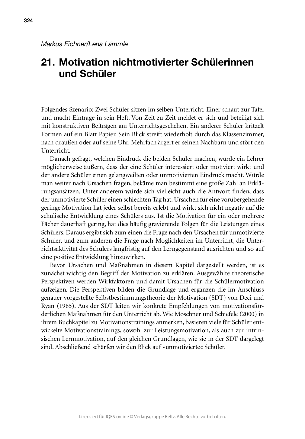 Motivation nichtmotivierter Schülerinnen und Schüler