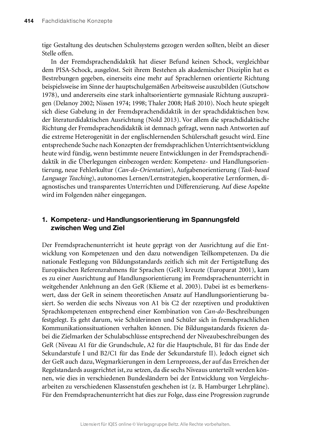 Englisch: Fremdsprachendidaktische Konzepte der Unterrichtsentwicklung