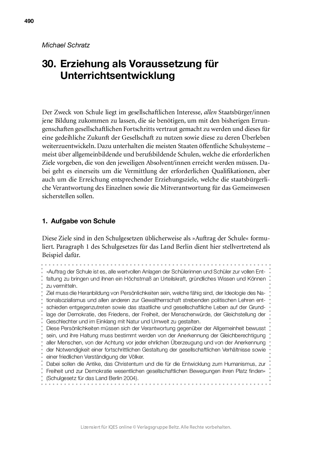 Erziehung als Voraussetzung für Unterrichtsentwicklung
