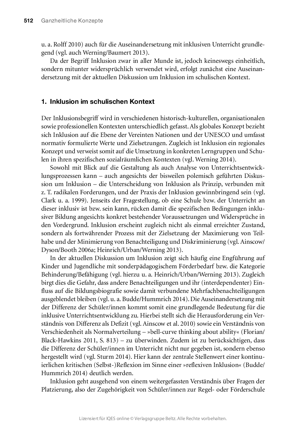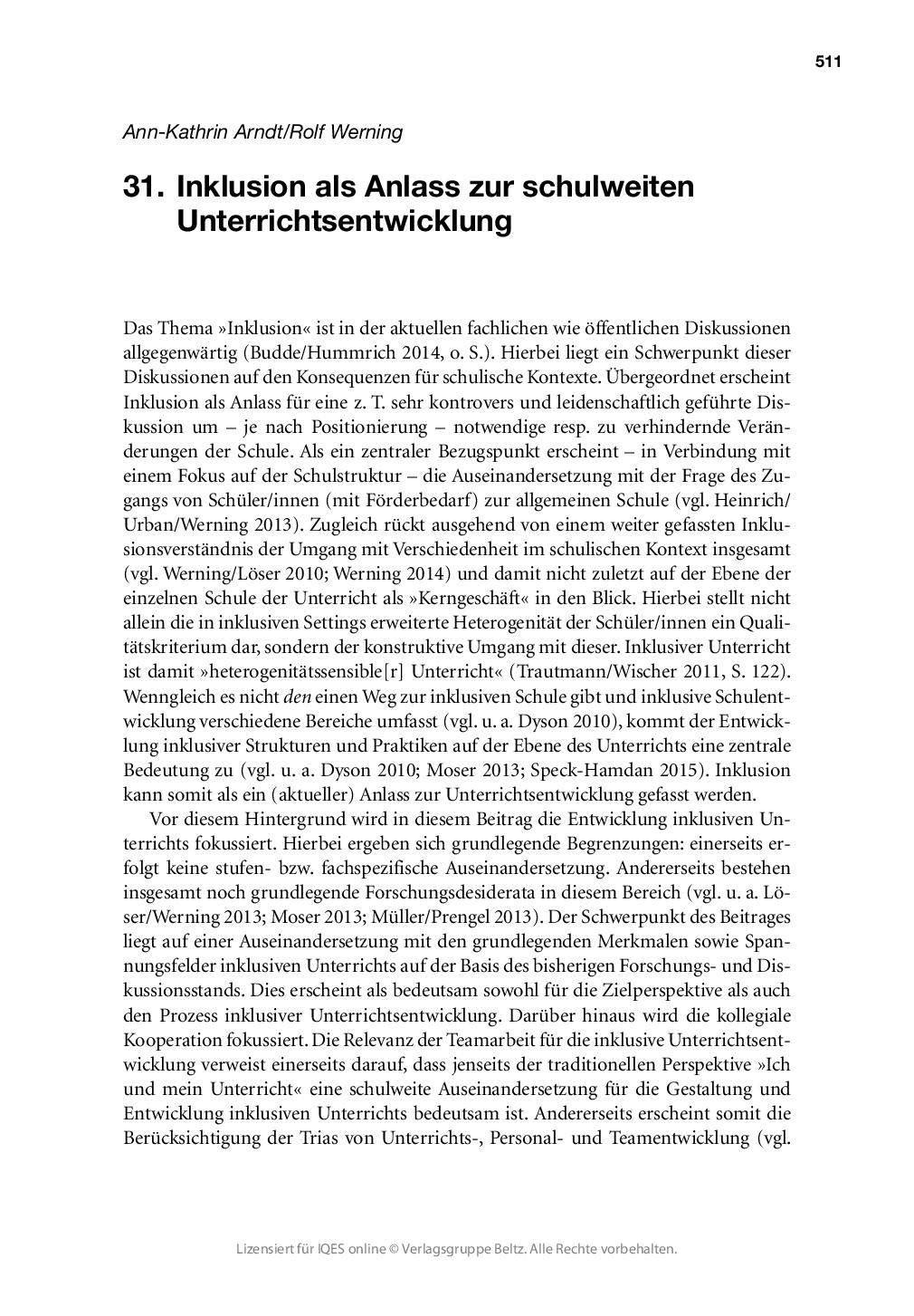 Inklusion als Anlass zur schulweiten Unterrichtsentwicklung
