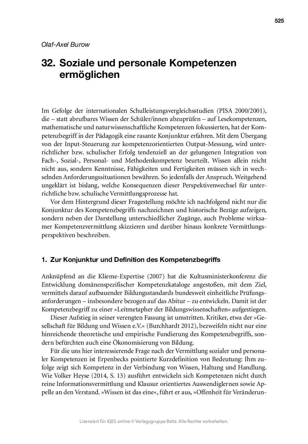 Im Gefolge der internationalen Schulleistungsvergleichsstudien (PISA 2000/2001), die – statt abrufbares Wissen der Schüler/innen abzuprüfen – auf Lesekompetenzen, mathematische und naturwissenschaftliche Kompetenzen fokussierten, hat der Kompetenzbegriff in der Pädagogik eine rasante Konjunktur erfahren. Mit dem Übergang von der Input-Steuerung zur kompetenzorientierten Output-Messung, wird unterrichtlicher bzw. schulischer Erfolg tendenziell an der gelungenen Integration von Fach-, Sozial-, Personal- und Methodenkompetenz beurteilt. Wissen allein reicht nicht aus, sondern Kenntnisse, Fähigkeiten und Fertigkeiten müssen sich in wechselnden Anforderungssituationen bewähren. So jedenfalls der Anspruch. Weitgehend ungeklärt ist bislang, welche Konsequenzen dieser Perspektivenwechsel für unterrichtliche bzw. schulische Vermittlungsprozesse hat.