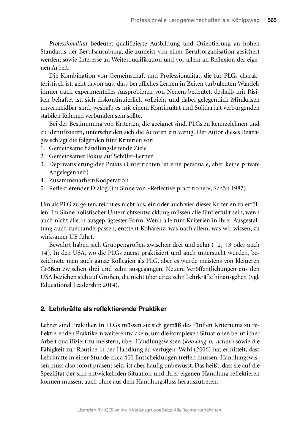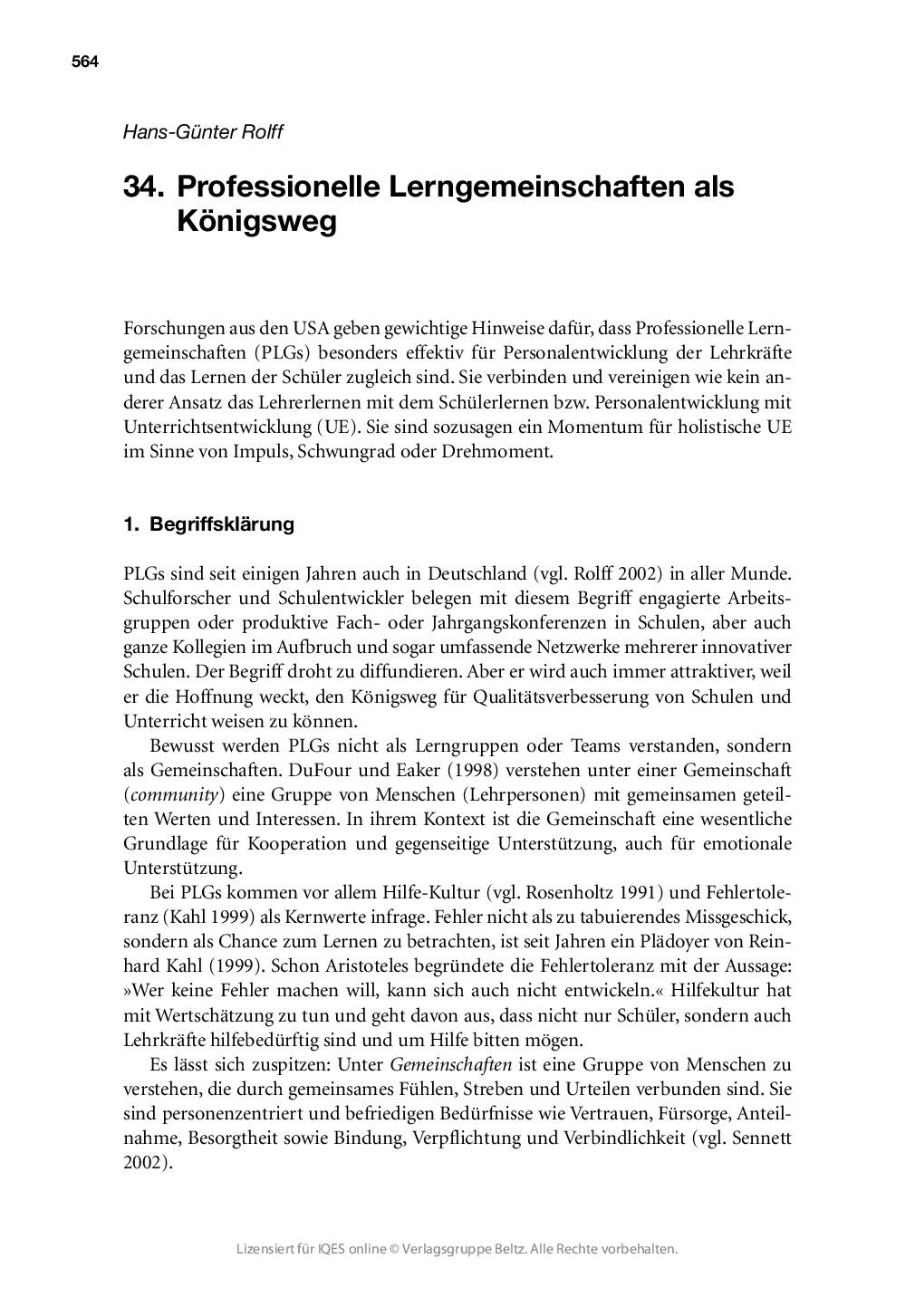Forschungen aus den USA geben gewichtige Hinweise dafür, dass Professionelle Lerngemeinschaften (PLGs) besonders effektiv für Personalentwicklung der Lehrkräfte und das Lernen der Schüler zugleich sind. Sie verbinden und vereinigen wie kein anderer Ansatz das Lehrerlernen mit dem Schülerlernen bzw. Personalentwicklung mit Unterrichtsentwicklung (UE). Sie sind sozusagen ein Momentum für holistische UE im Sinne von Impuls, Schwungrad oder Drehmoment.