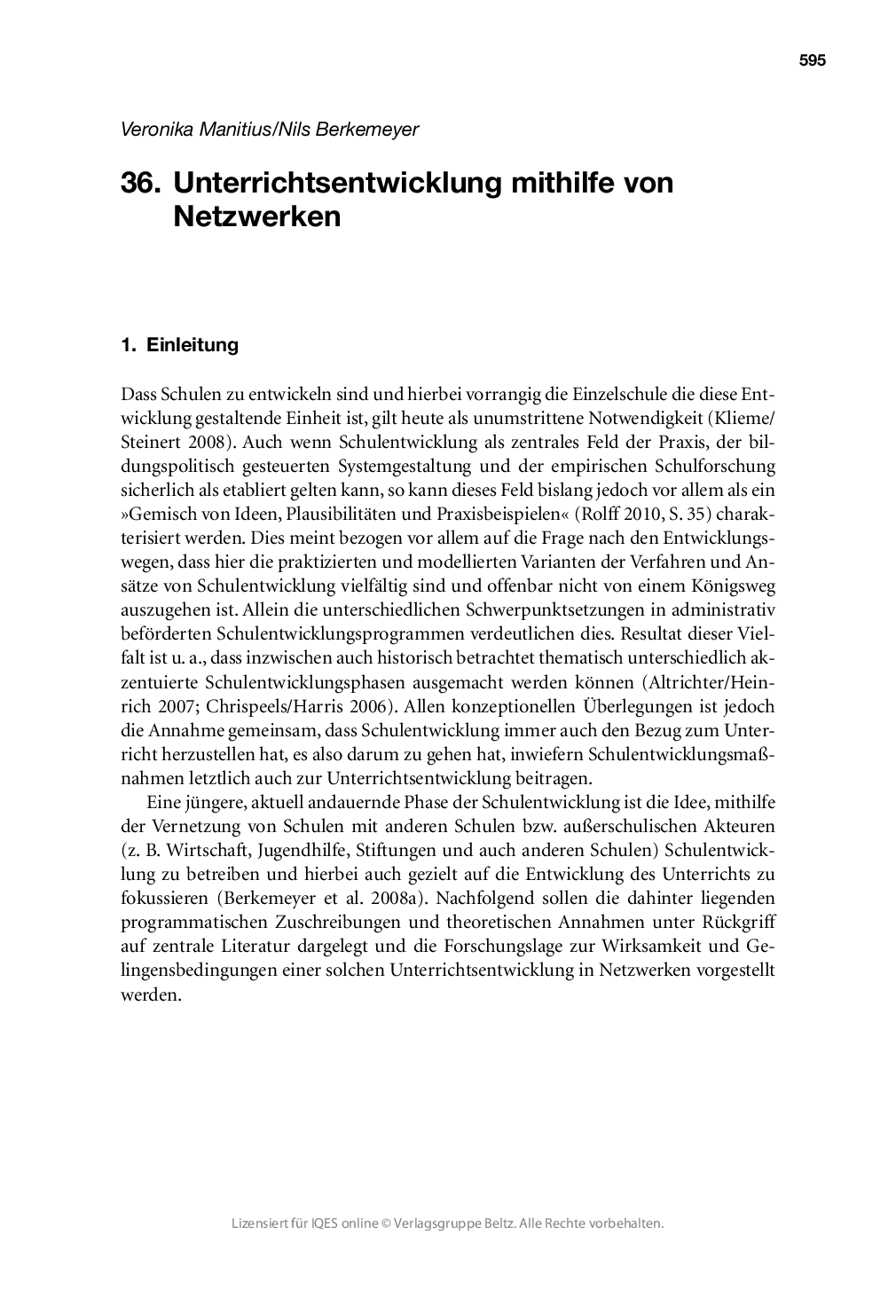 Dass Schulen zu entwickeln sind und hierbei vorrangig die Einzelschule die diese Entwicklung gestaltende Einheit ist, gilt heute als unumstrittene Notwendigkeit (Klieme/Steinert 2008). Auch wenn Schulentwicklung als zentrales Feld der Praxis, der bildungspolitisch gesteuerten Systemgestaltung und der empirischen Schulforschung sicherlich als etabliert gelten kann, so kann dieses Feld bislang jedoch vor allem als ein »Gemisch von Ideen, Plausibilitäten und Praxisbeispielen« (Rolff 2010, S. 35) charakterisiert werden. Dies meint bezogen vor allem auf die Frage nach den Entwicklungswegen, dass hier die praktizierten und modellierten Varianten der Verfahren und Ansätze von Schulentwicklung vielfältig sind und offenbar nicht von einem Königsweg auszugehen ist.