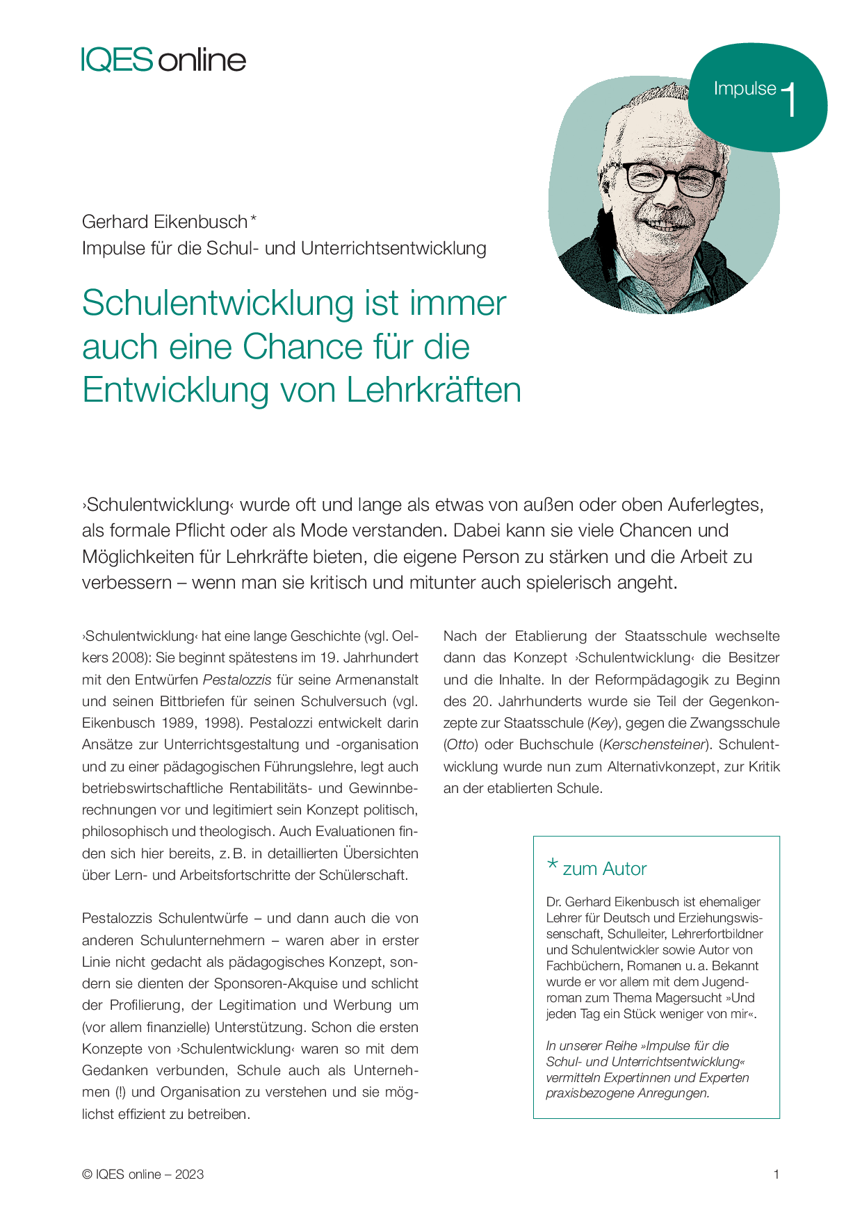 Autor, Lehrerfortbildner und ehemaliges Mitglied von PÄDAGOGIK
