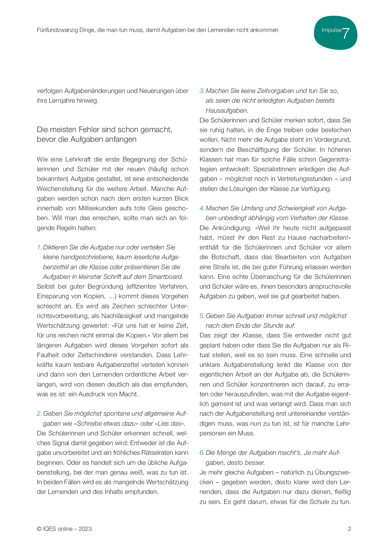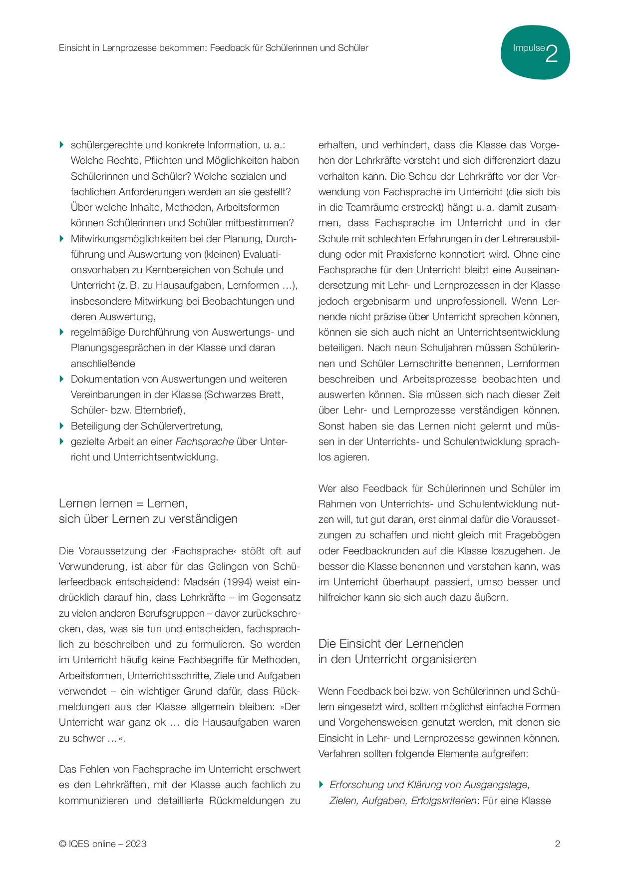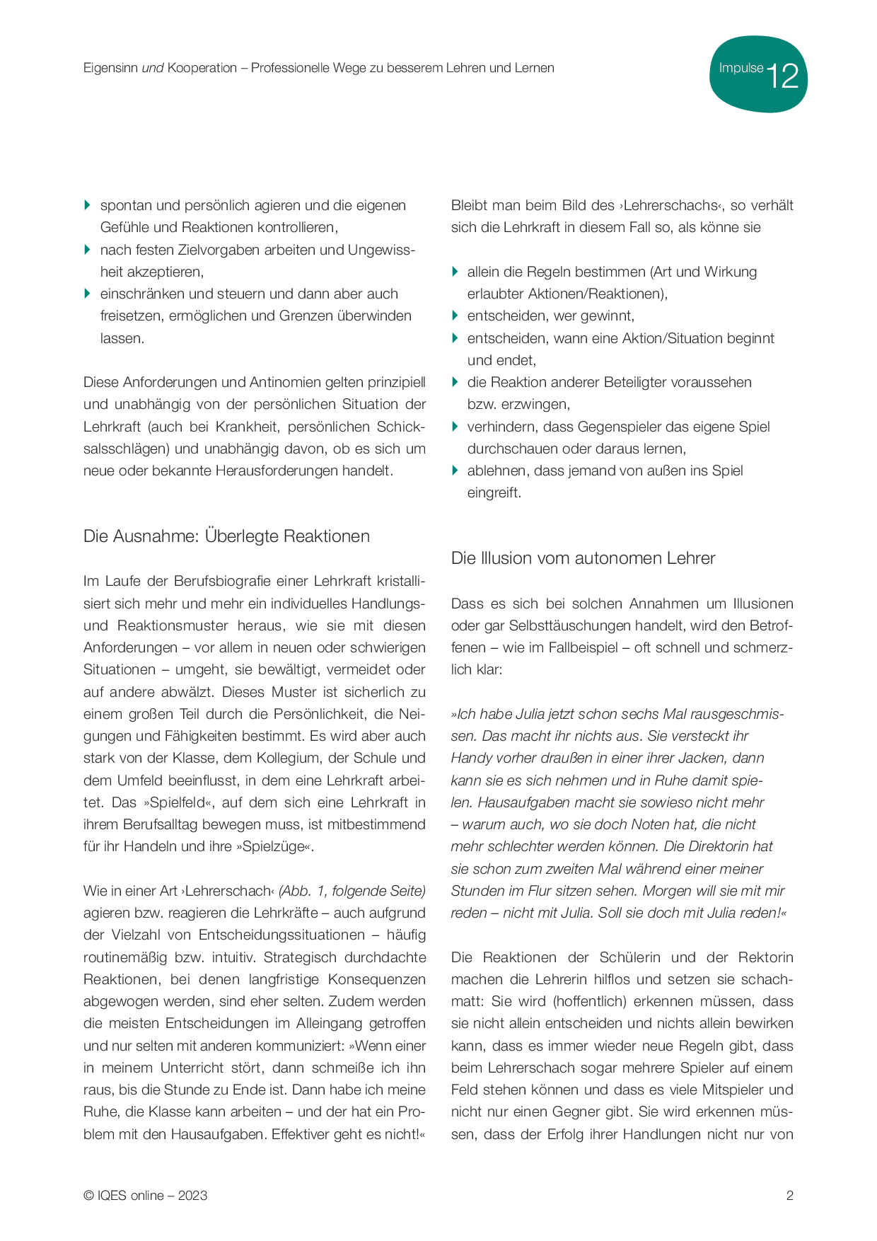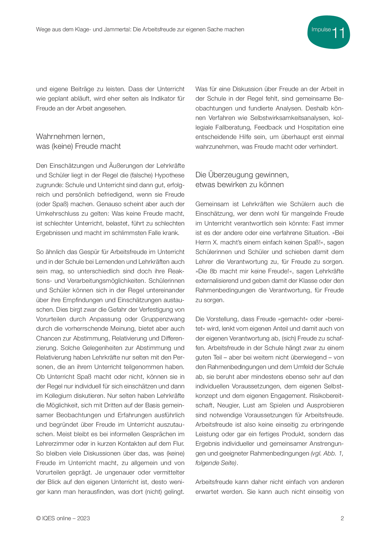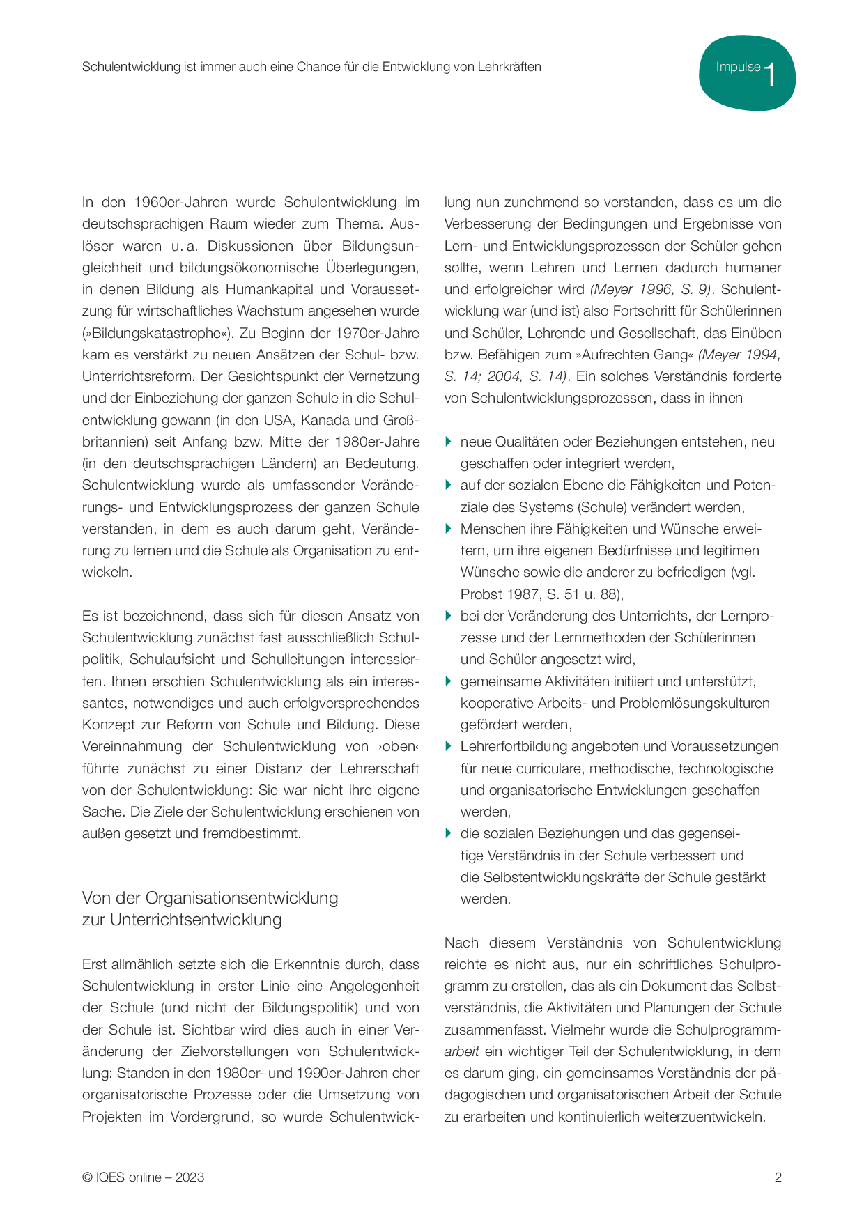 Aus: Impulse für die Schul- und Unterrichtsentwicklung