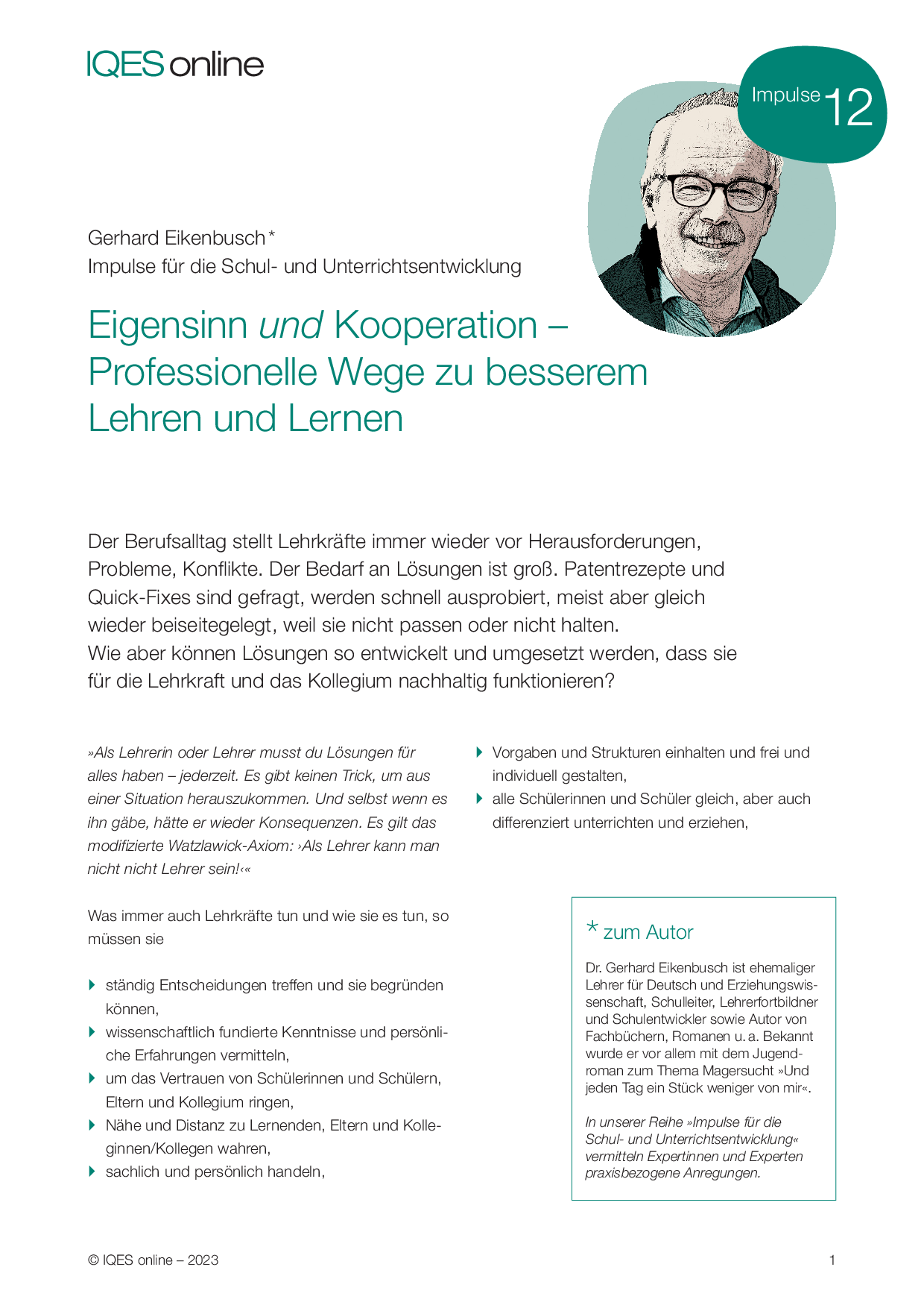 Eigensinn und Kooperation – Professionelle Wege zu besserem Lehren und Lernen