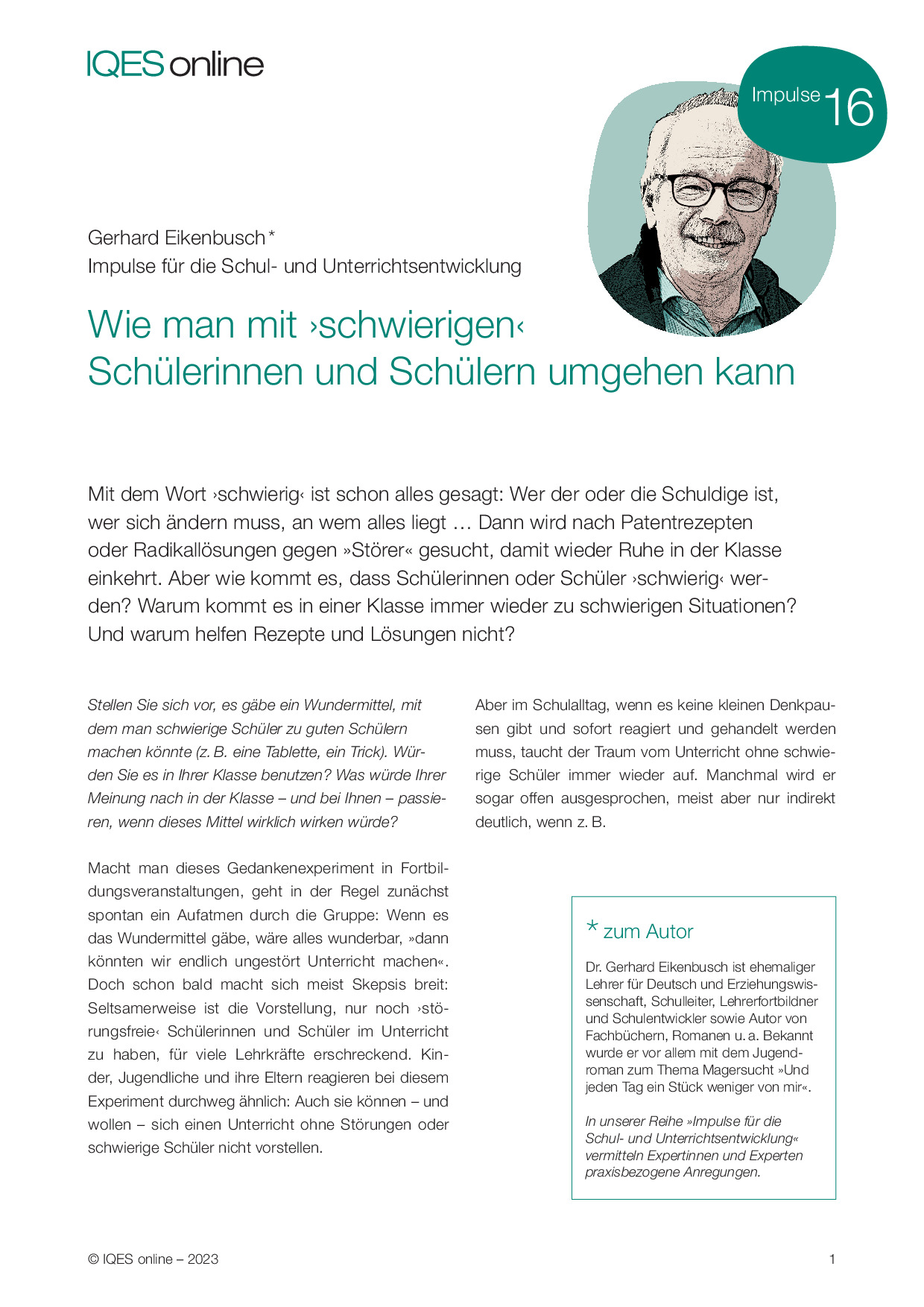 Wie man mit ›schwierigen‹ Schülerinnen und Schülern umgehen kann