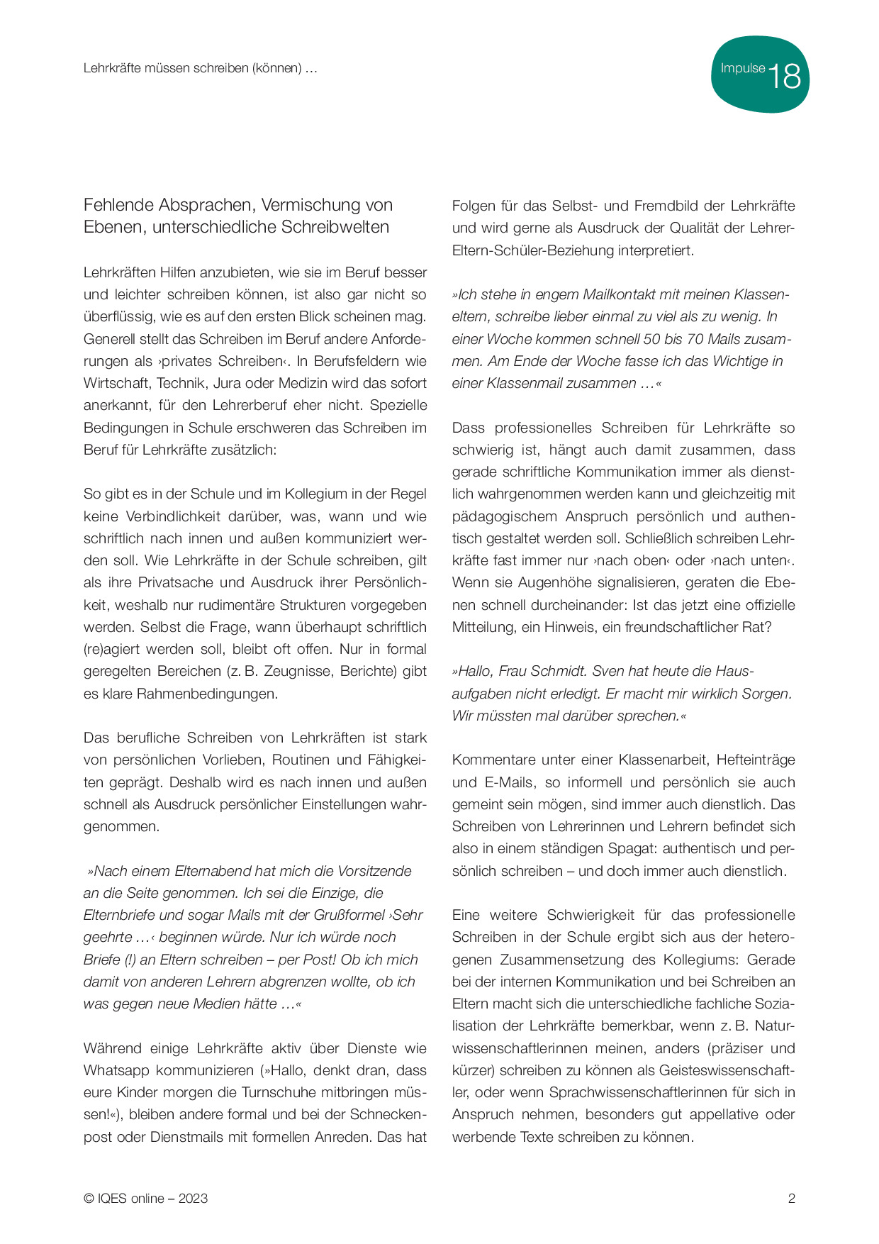Dass Lehrerinnen und Lehrer gut schreiben können (müssen), wird gemeinhin vorausgesetzt: Schließlich haben sie einen akademischen Abschluss, gehen täglich mit Sprache um, korrigieren, sind sprachliche Vorbilder – also müssen sie Fachleute für das Schreiben sein. Im Schulalltag erweist sich diese Annahme oft als falsch: Schreiben im Beruf ist für Lehrkräfte oft eine Last. Wie können Lehrkräfte »Schreibfallen« vermeiden? Was können Schulen tun, um ihnen das Schreiben zu erleichtern?